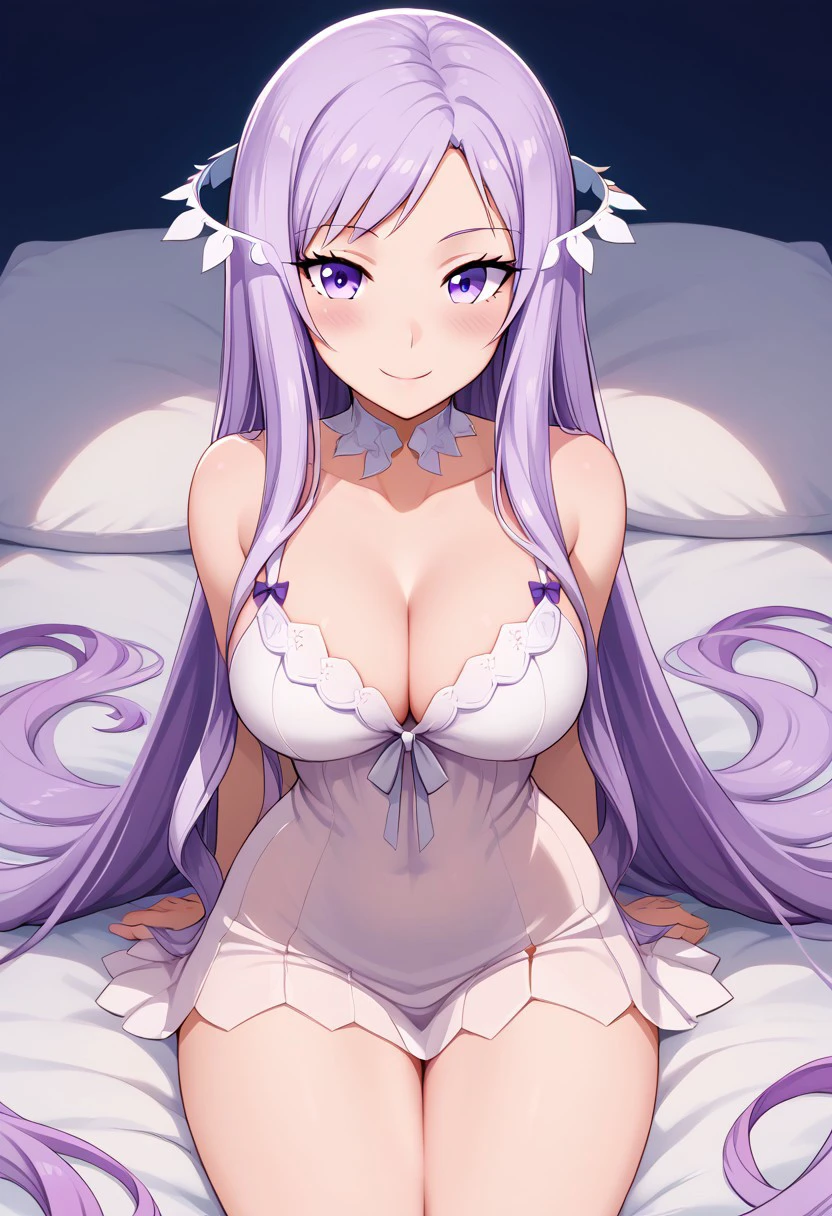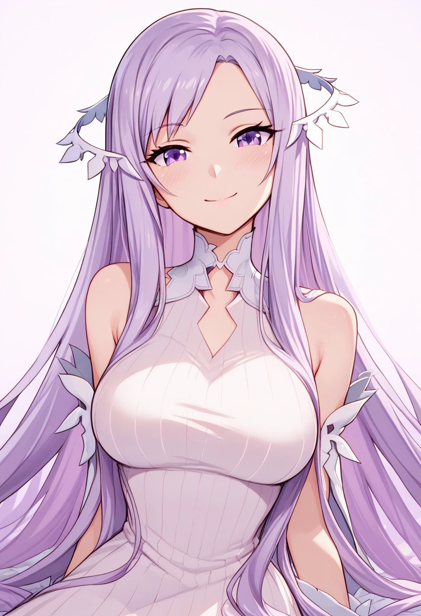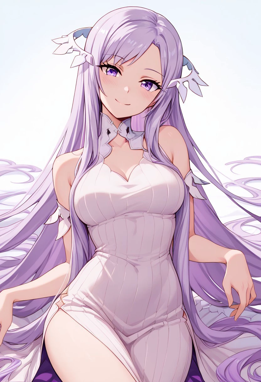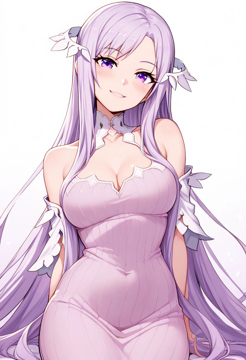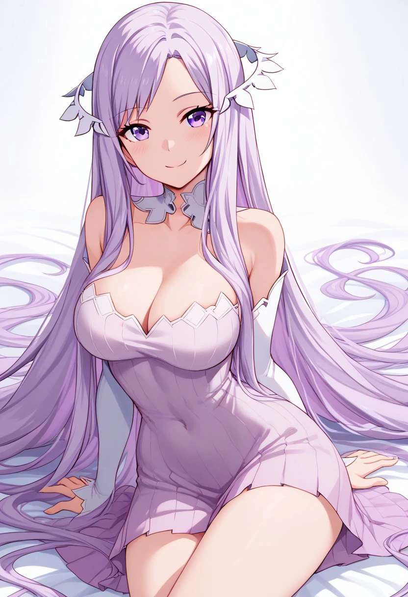 patQuinella, purple hair, quinella, absurdly long hair, purple eyes, long hair, parted bangs, purple hair, very long hair, hair ornament, dress, purple dress, ribbed dress, detached sleeves, sleeveless,