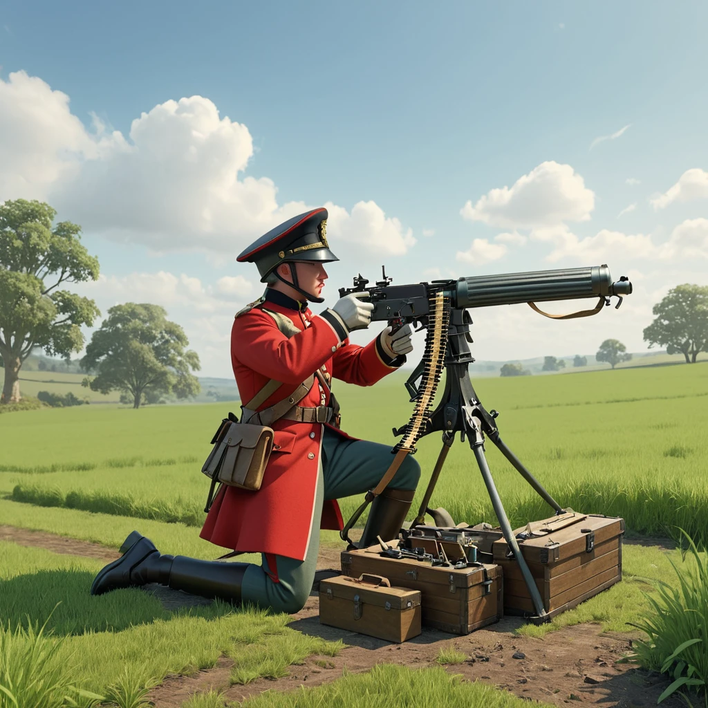 The Vickers machine gun or Vickers gun is a water-cooled .303 British (7.7 mm) machine gun produced by Vickers Limited, originally for the British Army. The gun was operated by a three-man crew but typically required more men to move and operate it: one fired, one fed the ammunition, the others helped to carry the weapon, its ammunition, and spare parts. It was in service from before the First World War until the 1960s.