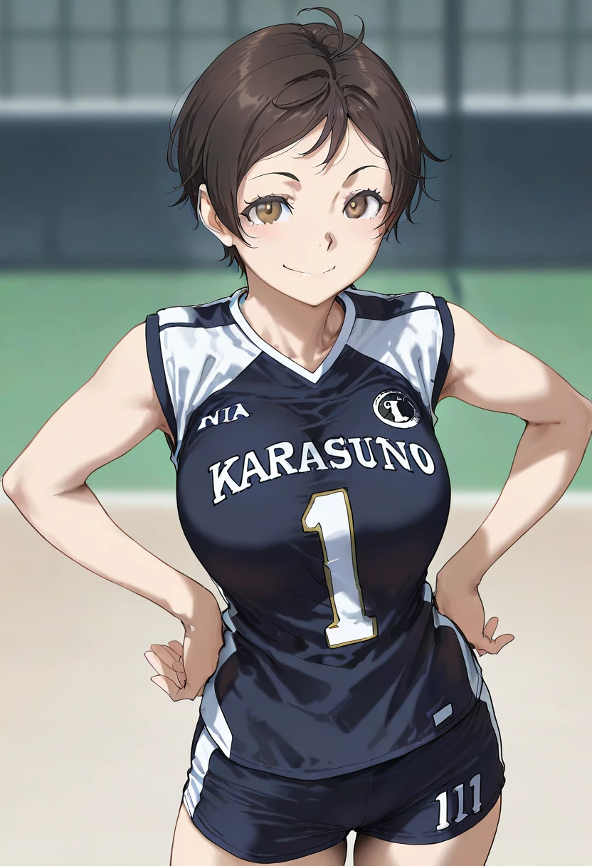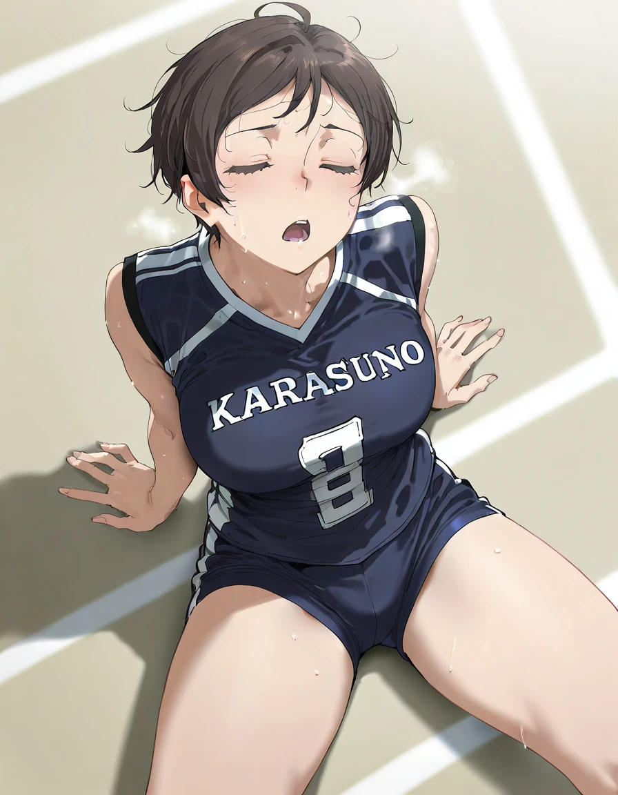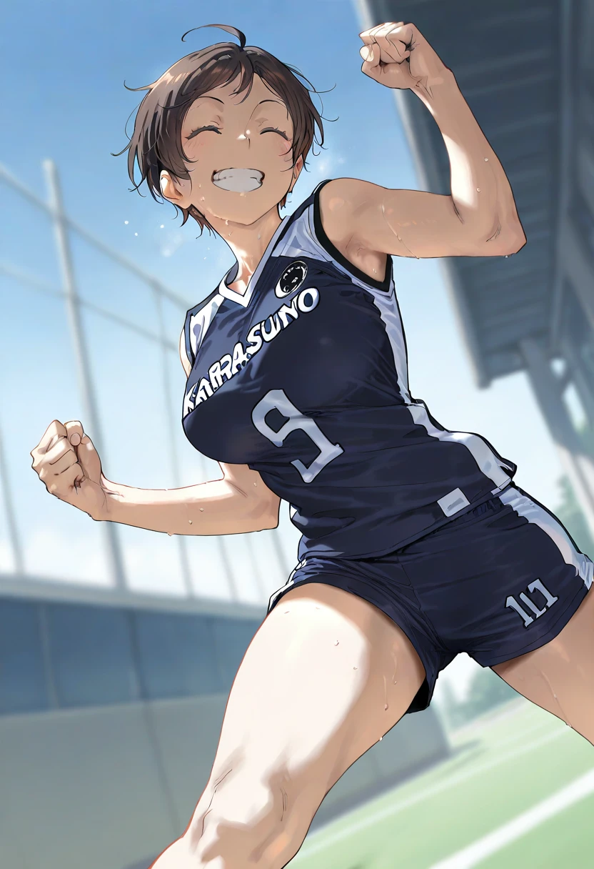 sportswear,breasts,karasuno no.1 jersey,sleeveless,track shorts