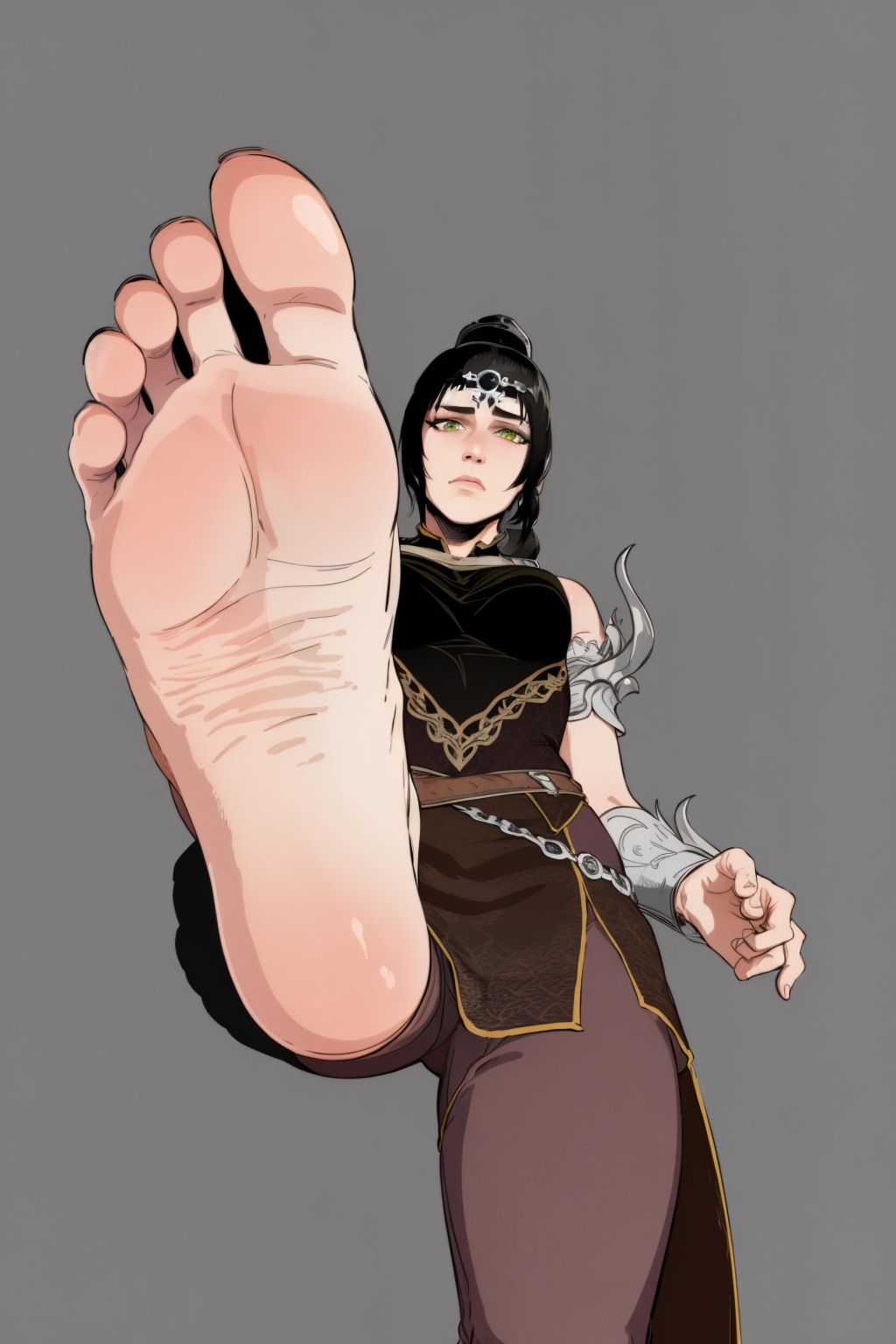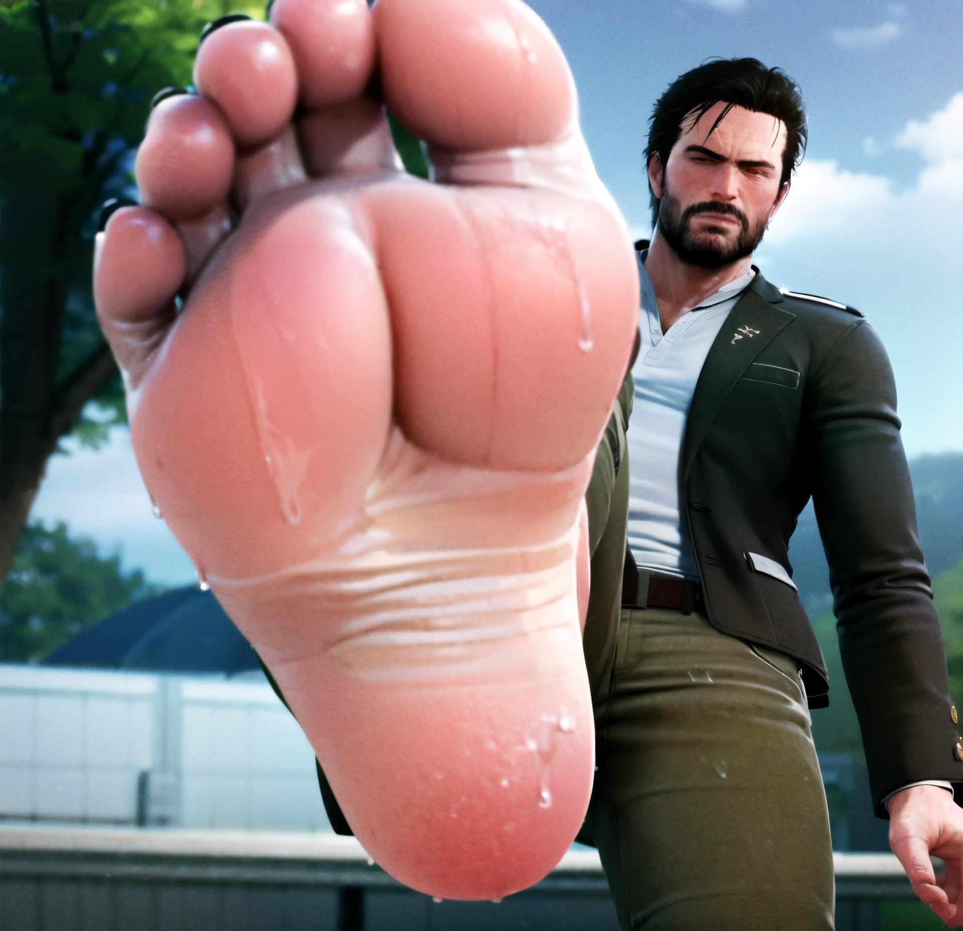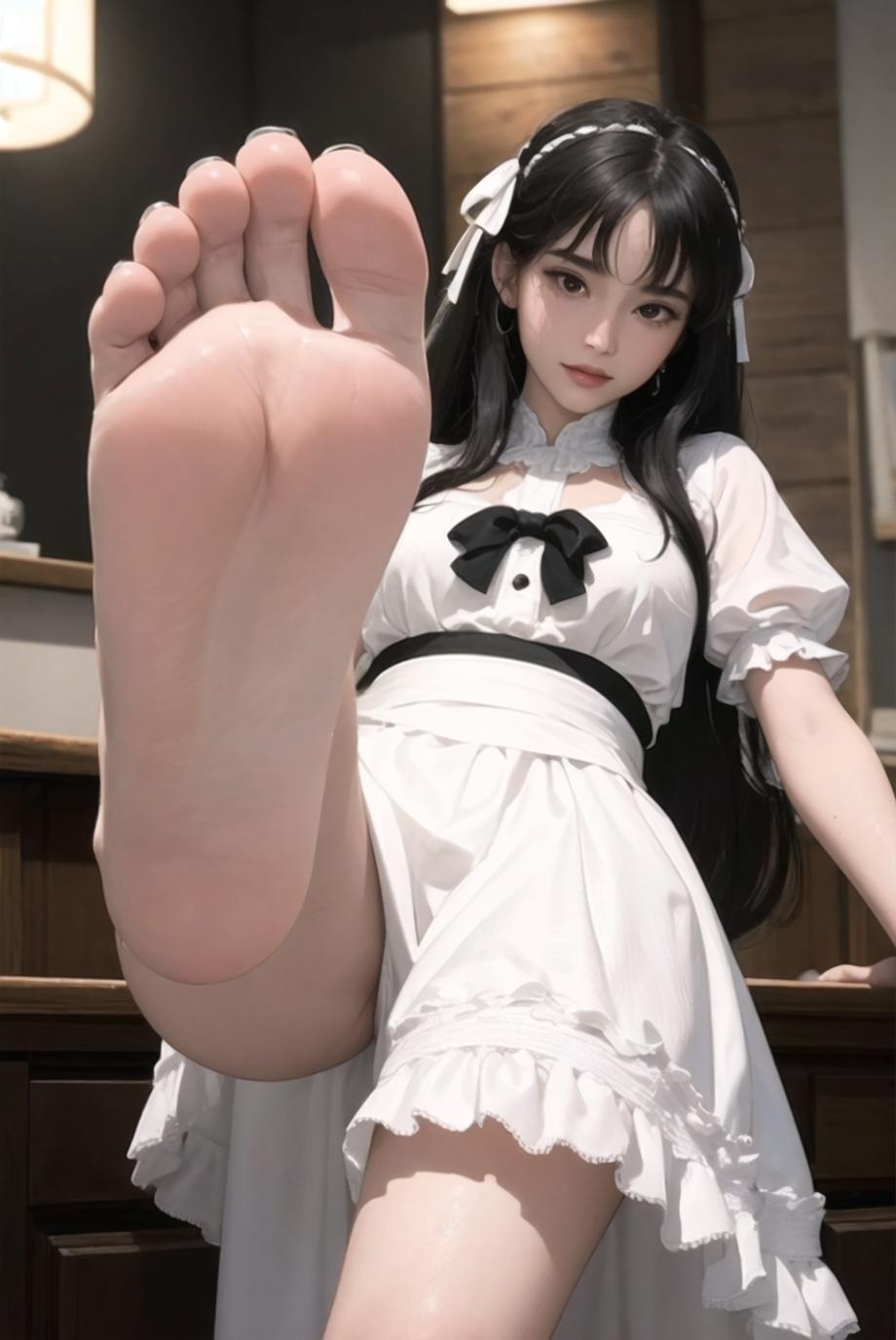 Other prompts : barefoot, feet, foot focus, soles, toes, foreshortening, view from below
