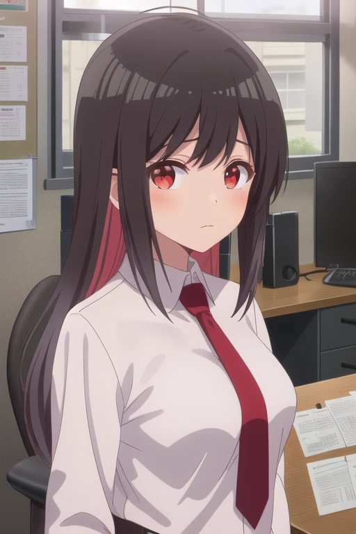 Trigger Words: uzuki shinobu, long hair, multicolored hair, two-tone hair, black hair, red hair, red eyes