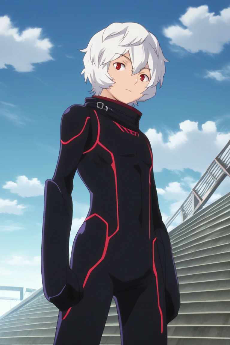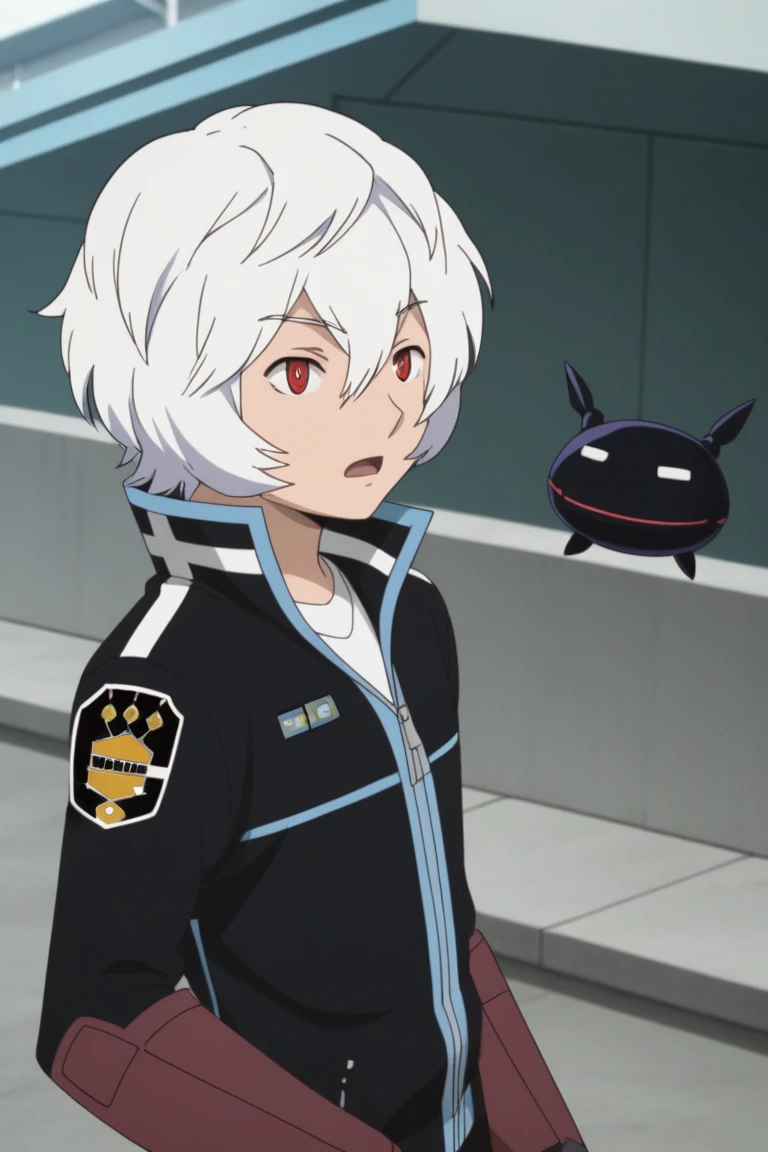 yuma kuga, white hair, red eyes