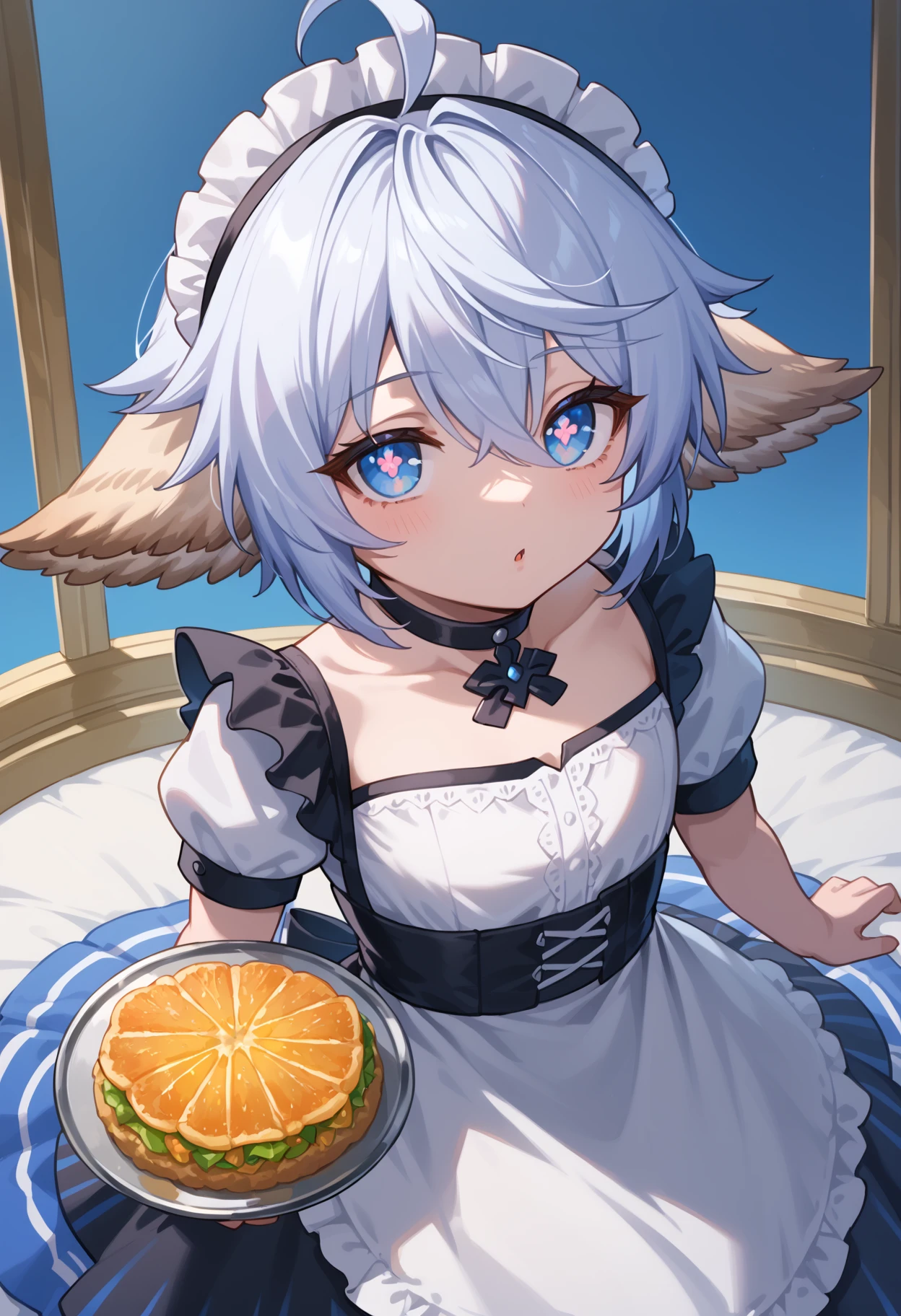 gbfwam, short hair, animal ears, ahoge, blue eyes, + +, flower-shaped pupils,