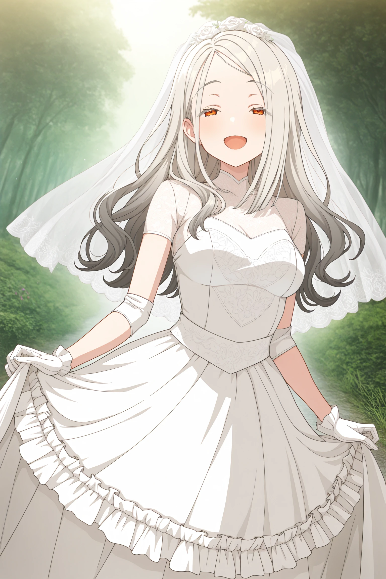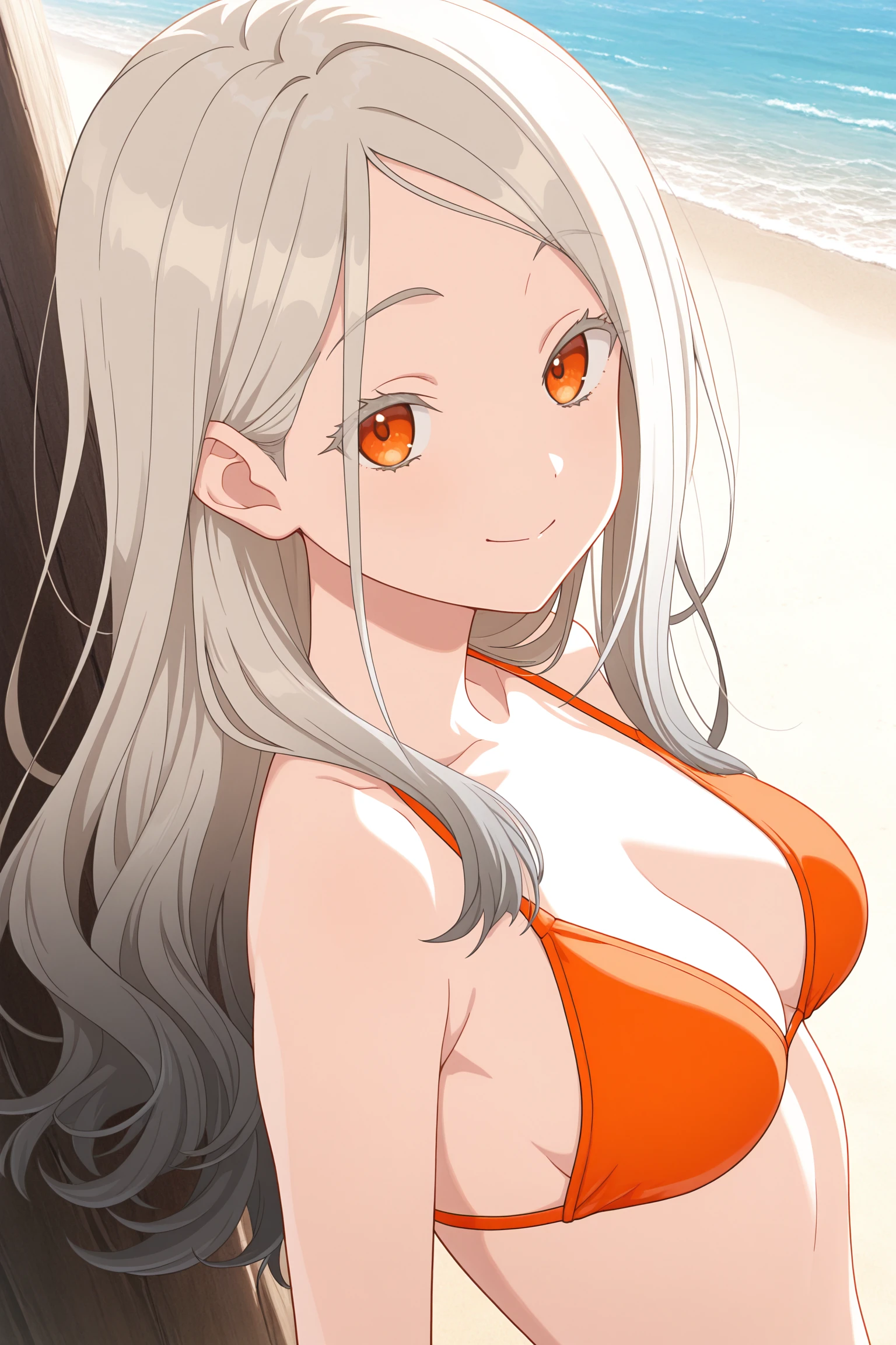 grey hair, hairclip, parted bangs, forehead, gradient hair, long hair, orange eyes