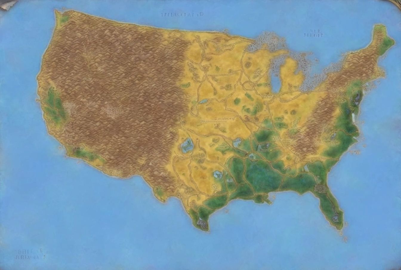 The USA map was made in img2img with a colored topographic map with a denoising of 0.6.