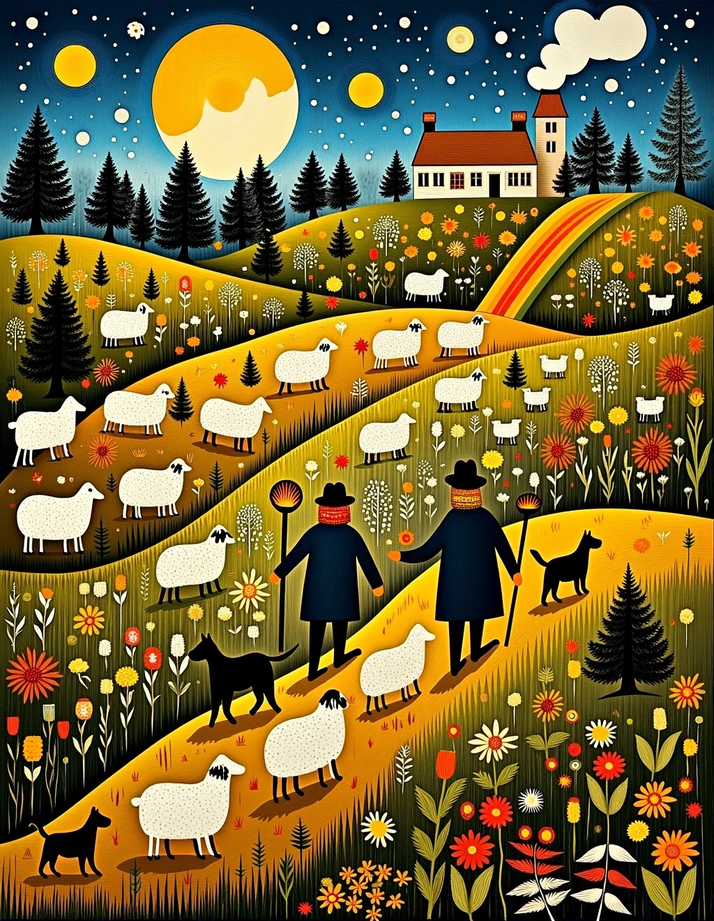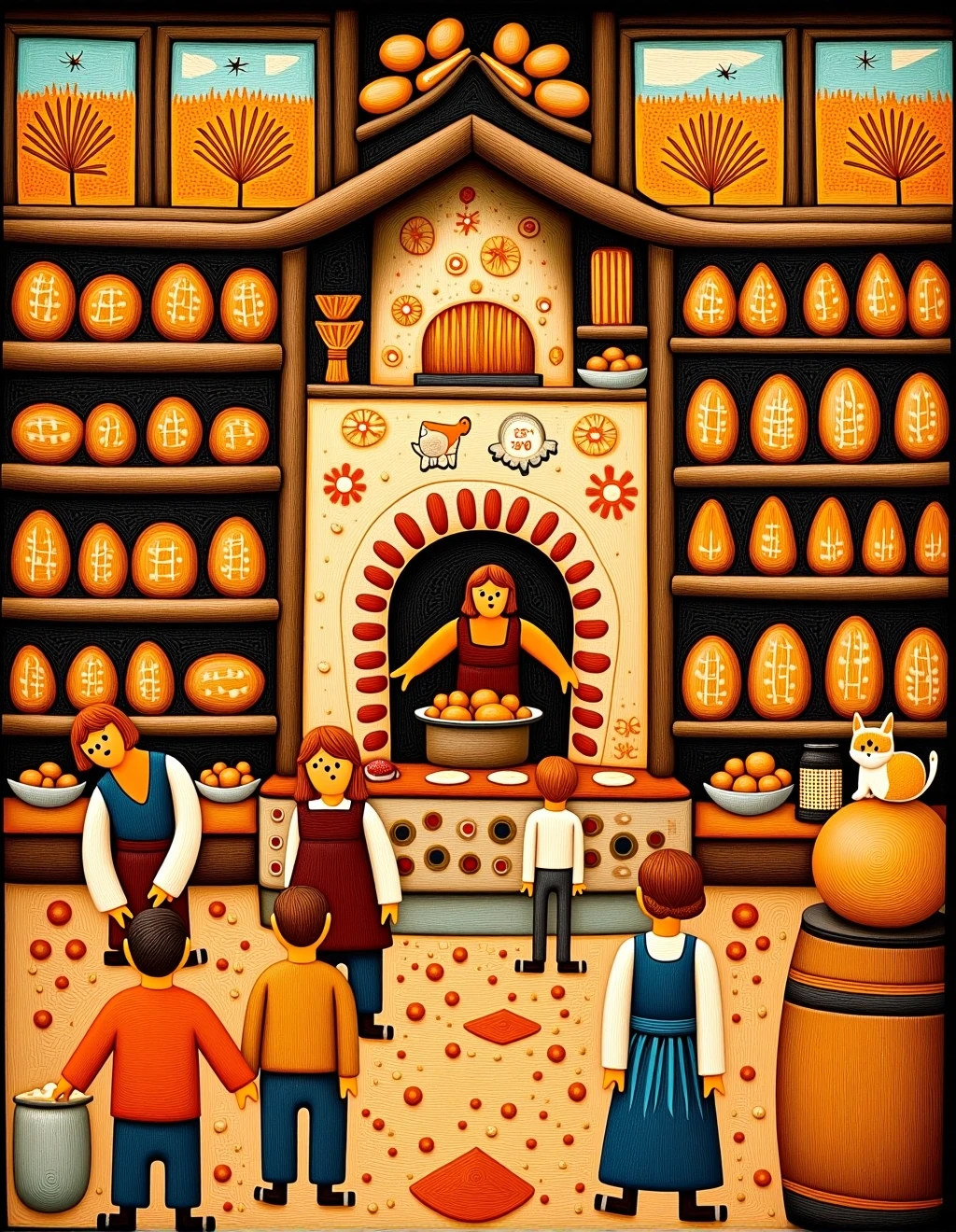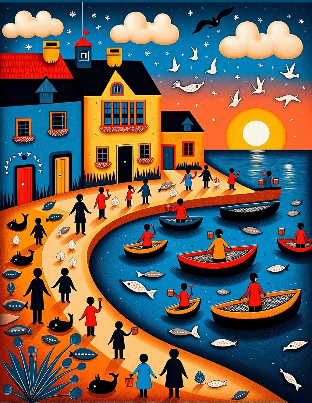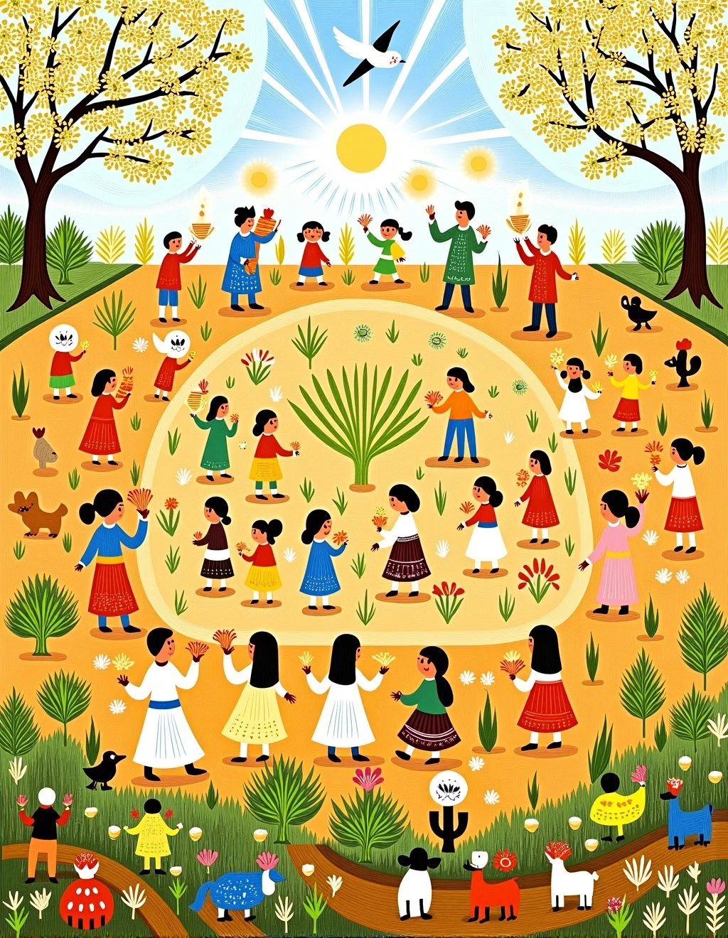 The style of folk art can vary greatly depending on the cultural context, but common themes include depictions of everyday life, religious and spiritual motifs, historical events, nature, and folk tales.