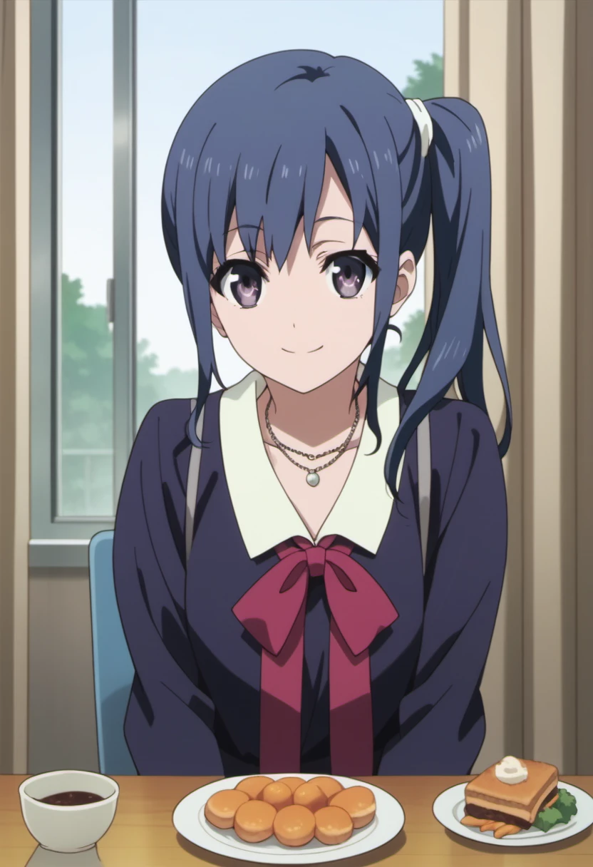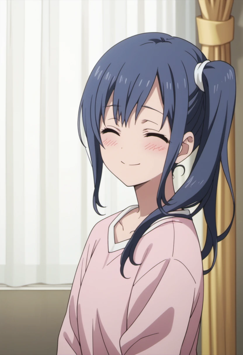 Trigger Words: imai midori, blue hair, side ponytail, long hair, purple eyes
