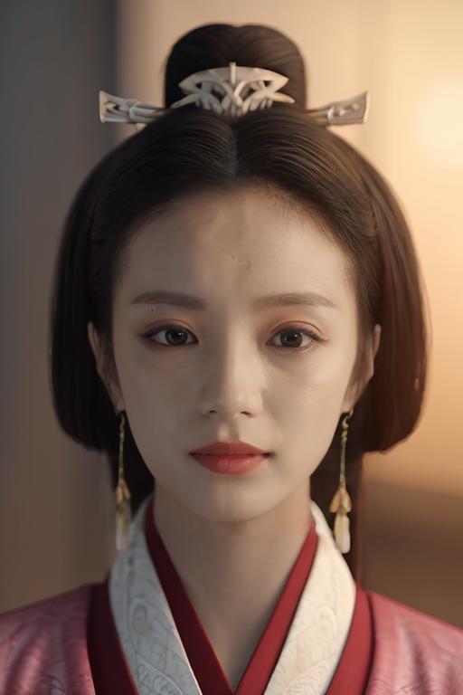 luyuan,1girl,3d,black_hair,blurry,brown_eyes,chinese_clothes,earrings,face,full_moon,hair_ornament,hair_stick,hair_tubes,hanfu,red_clothes:1.5,white collar,jewelry,lips,long_hair,looking_at_viewer,makeup,portrait,realistic,solo,