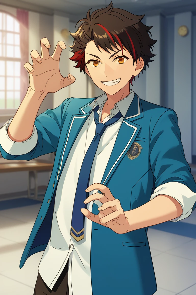 tetora nagumo, multicolored hair, black hair, yellow eyes,