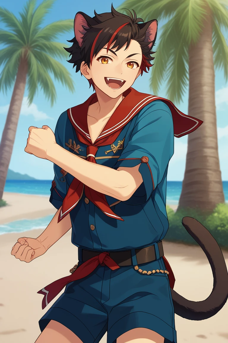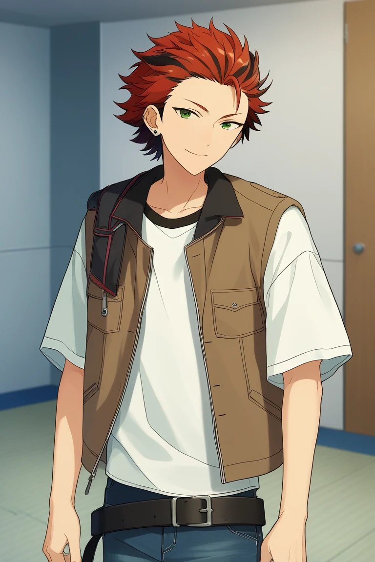 kuro kiryu, red hair, green eyes, earrings, two-tone hair,
