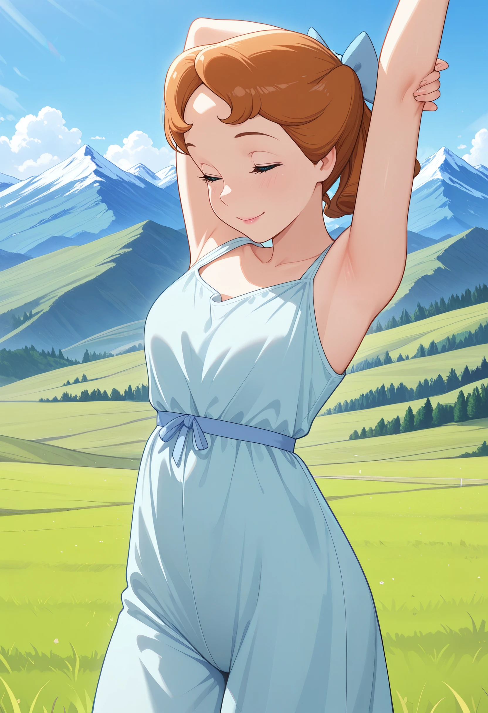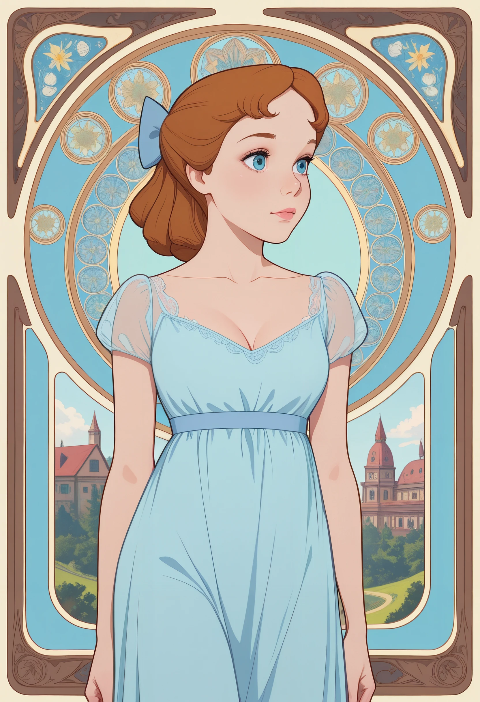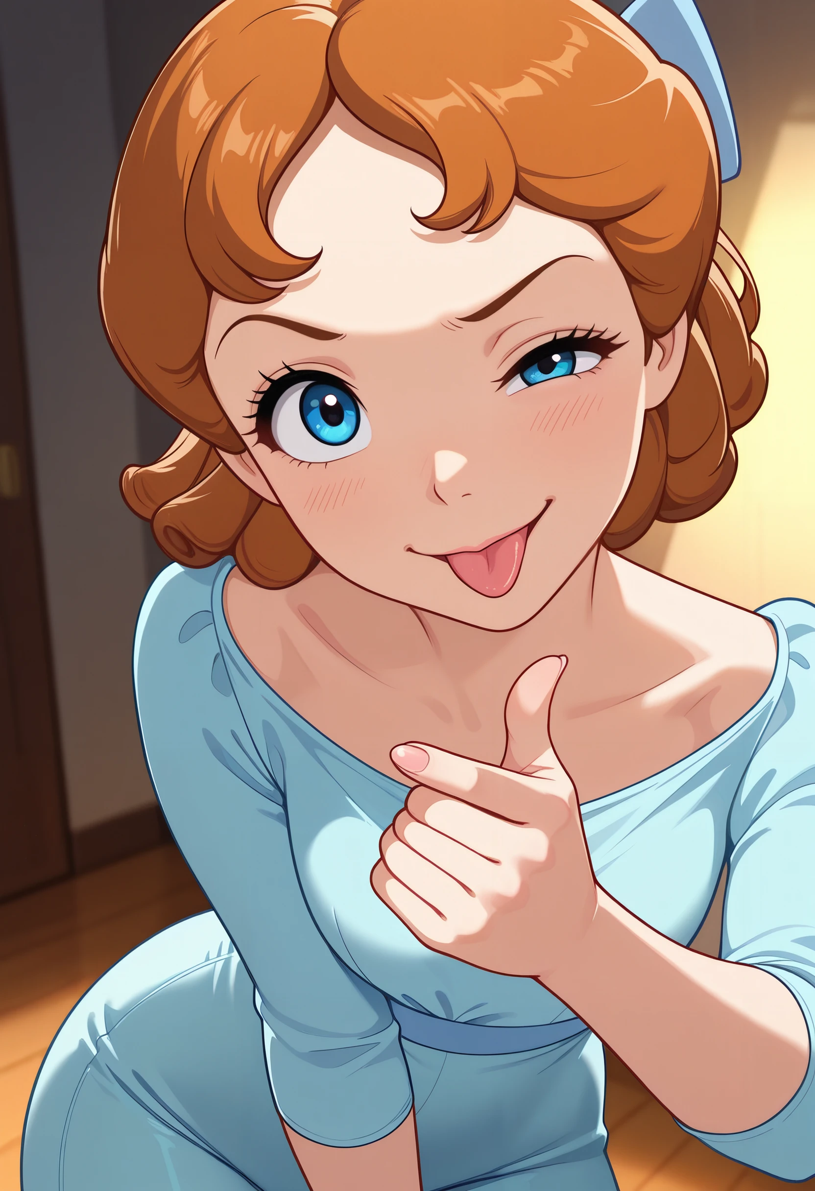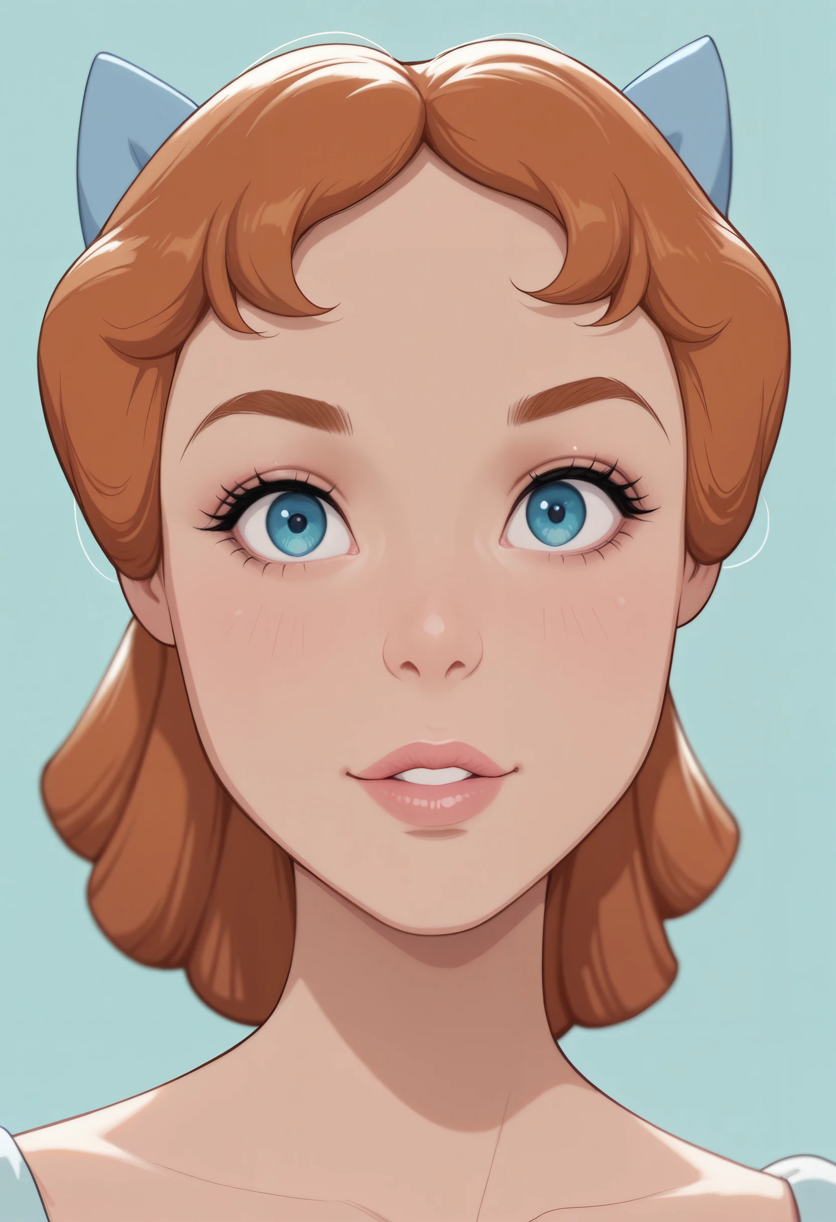 DWendy, 1girl, brown hair, hair bow, blue eyes