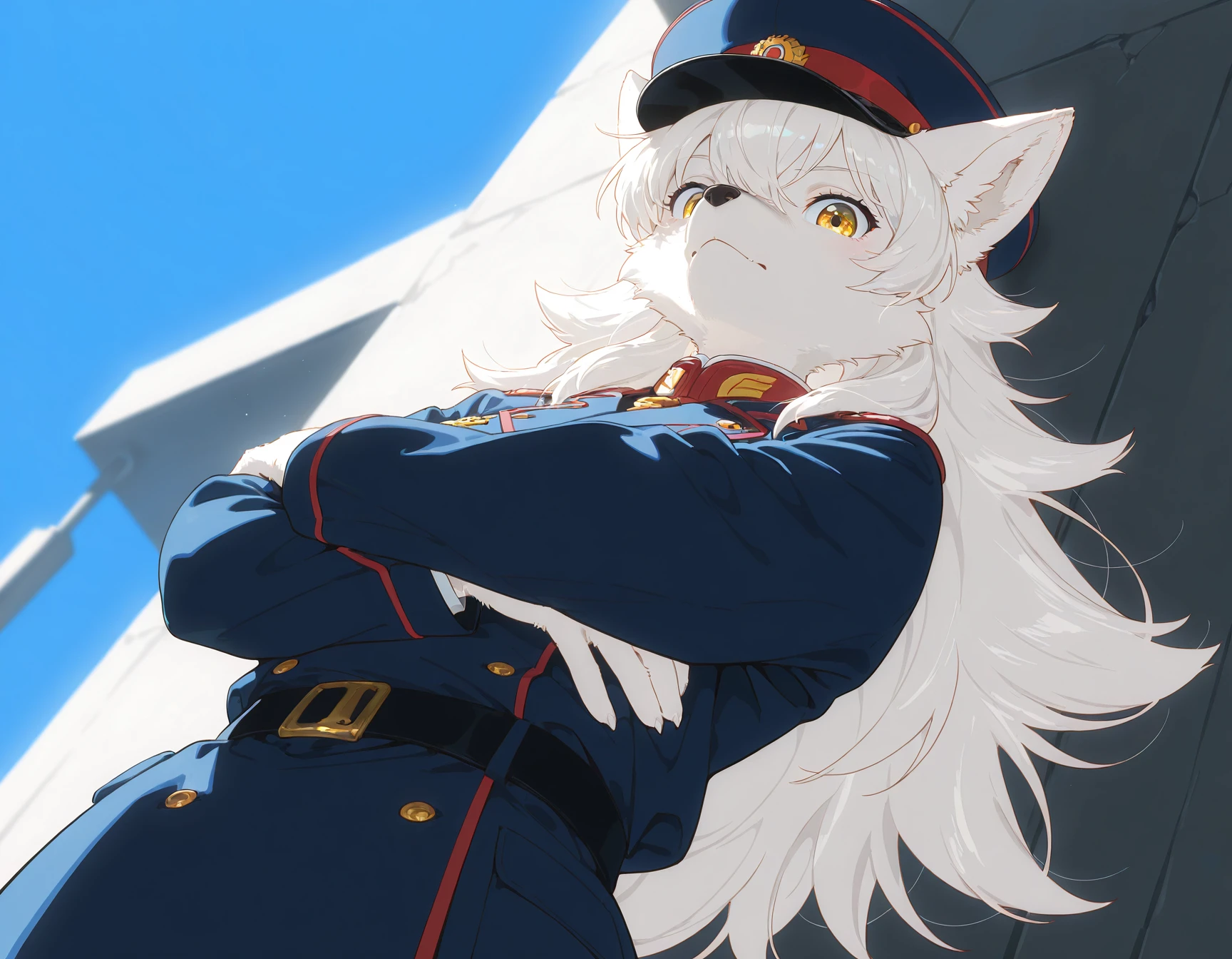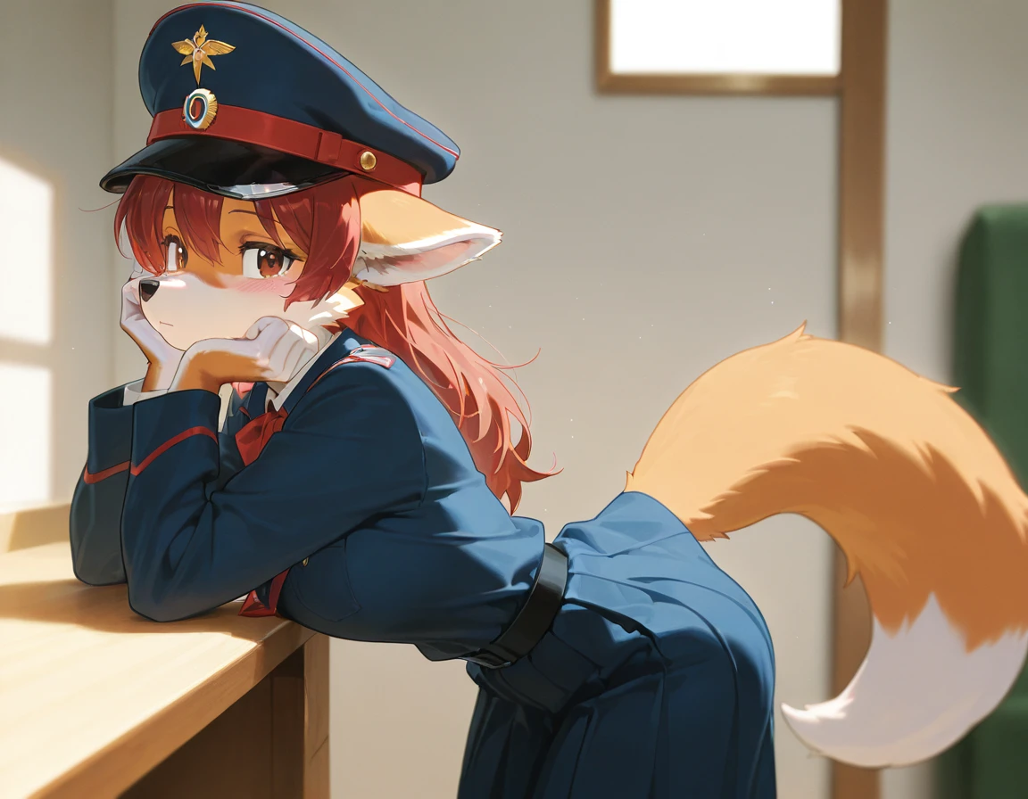 Puts a proper cap on the character. So far the cap works better, maybe later I will add more photos with the rest of the uniform. Keywords: furazhka, gold trim, red trim, red band, uniform, military uniform