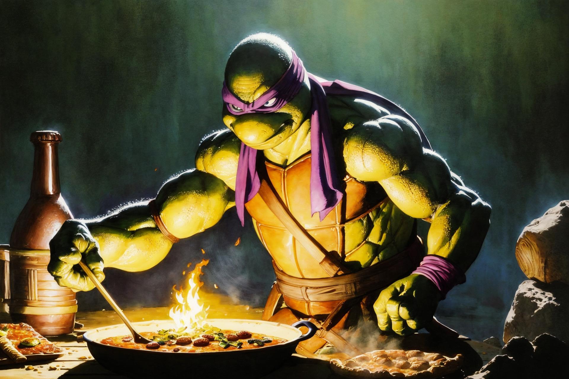 Trained on about 100 HD of the 1990s style TMNT images for about 2000 steps