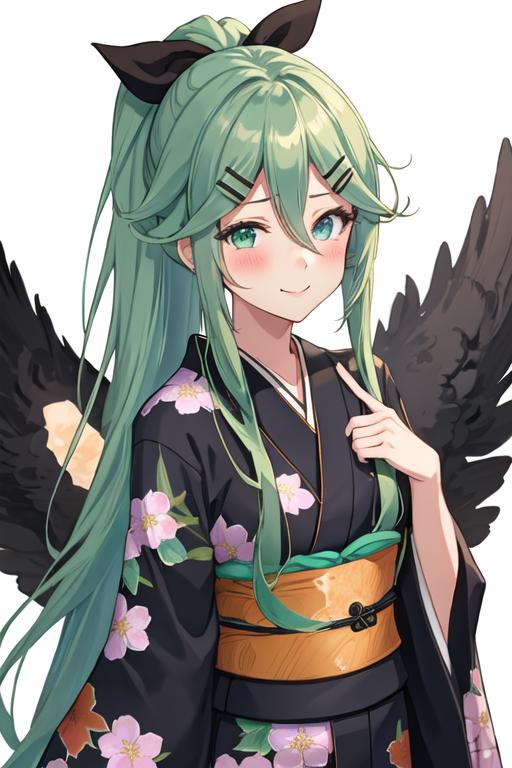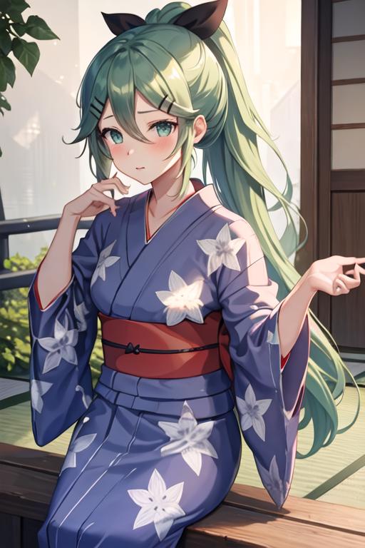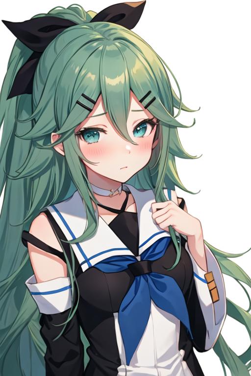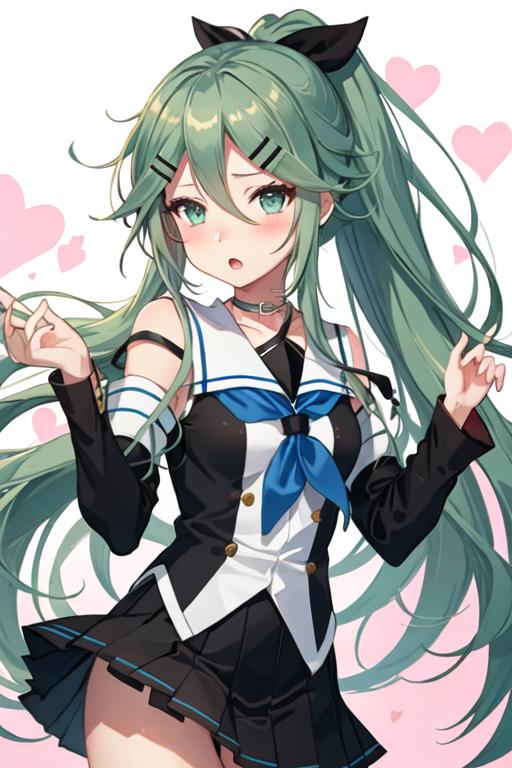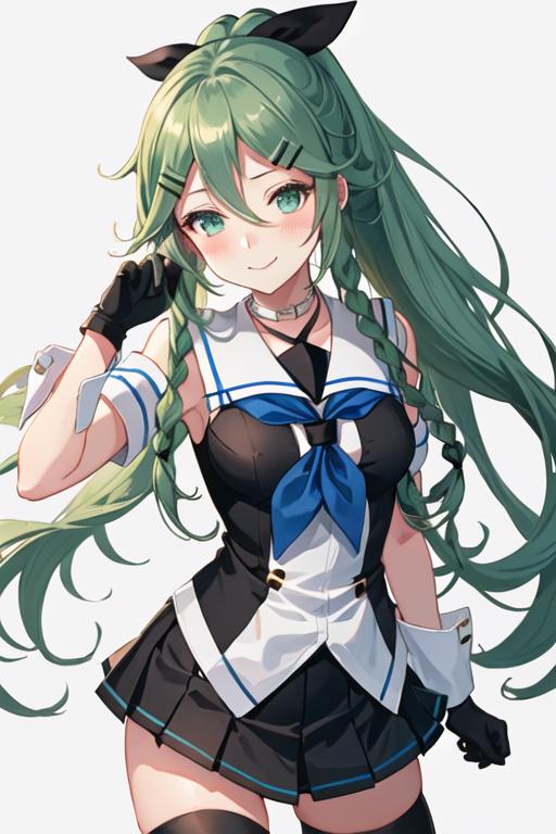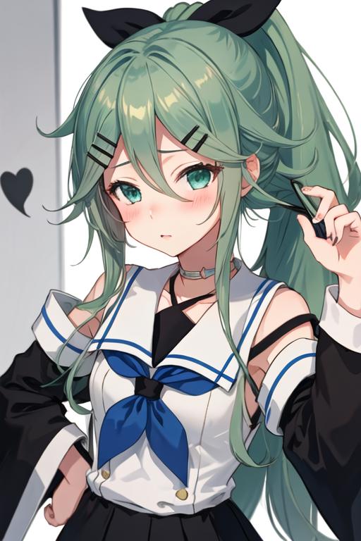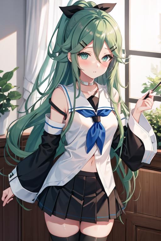 The trigger word is yamakaze_kantaicollection, and the recommended tags are best quality, masterpiece, highres, solo, {yamakaze_kantaicollection:1.15}, green_hair, hair_between_eyes, long_hair, hair_ornament, hairclip, ribbon, hair_ribbon, ponytail, black_ribbon, blush, serafuku, green_eyes, blue_eyes.