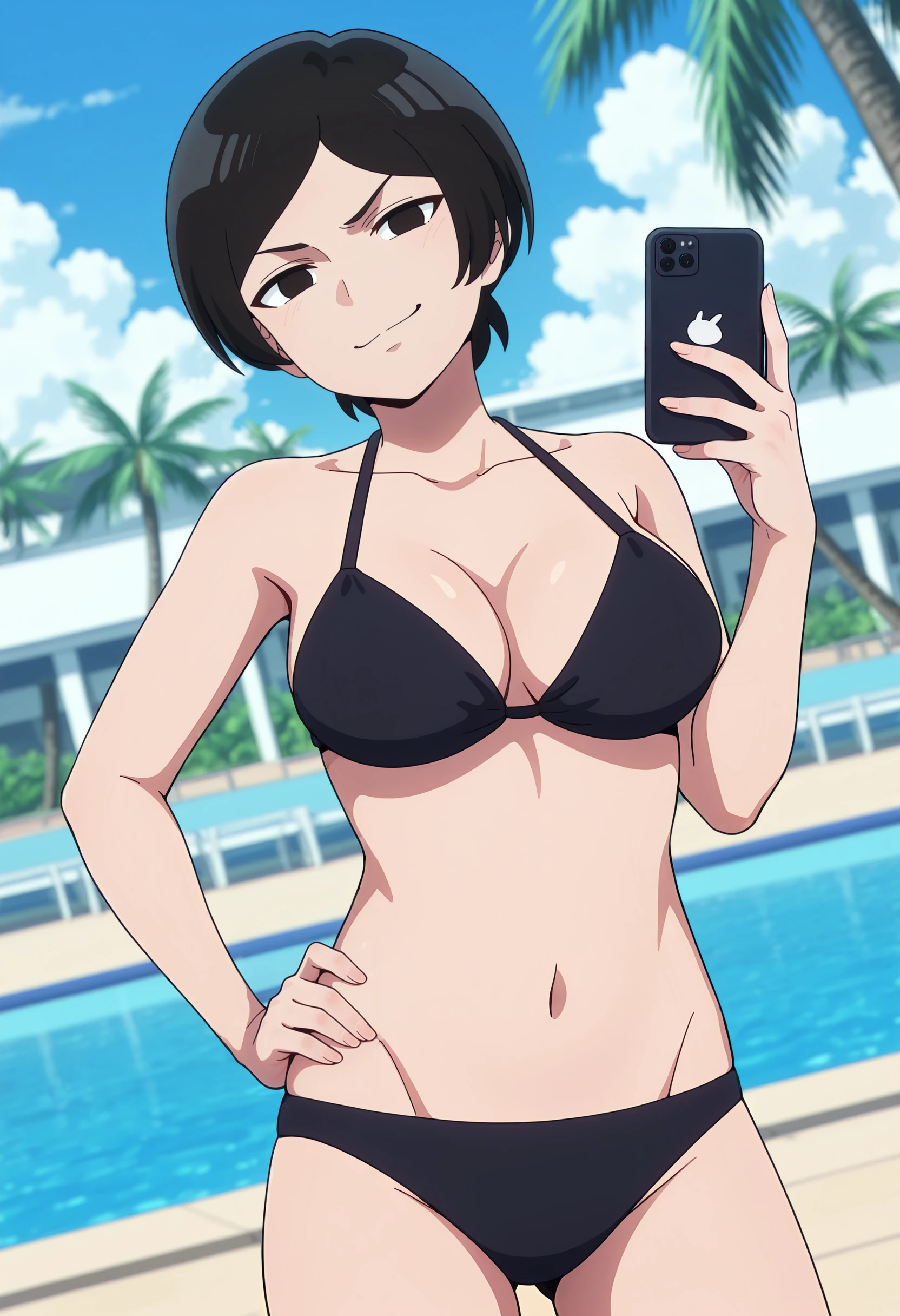 MattanScoop, black eyes, black hair, short hair, parted bangs, sidelocks