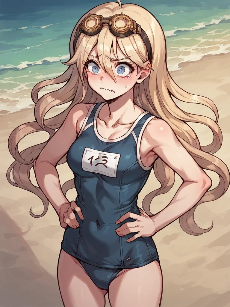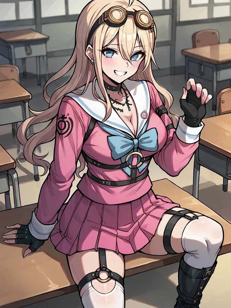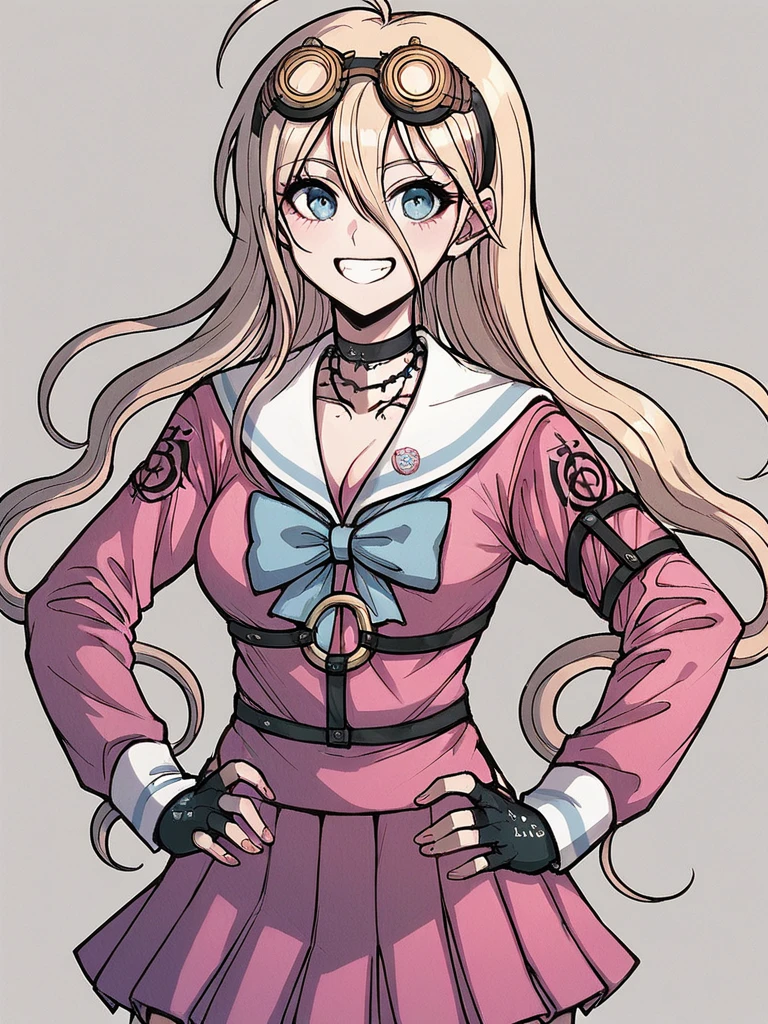 Iruma Miu, blonde hair, long hair, ahoge, blue eyes,
