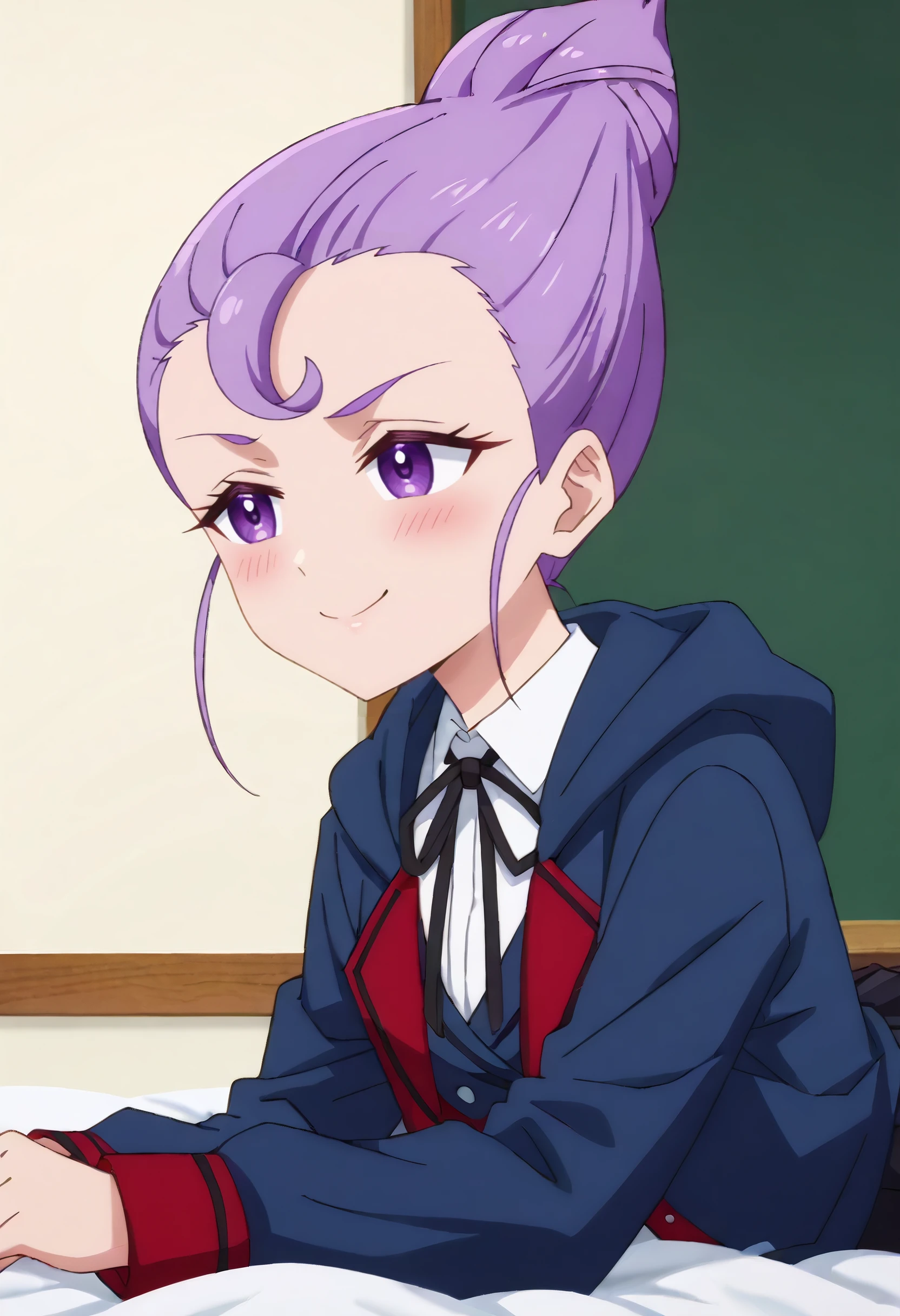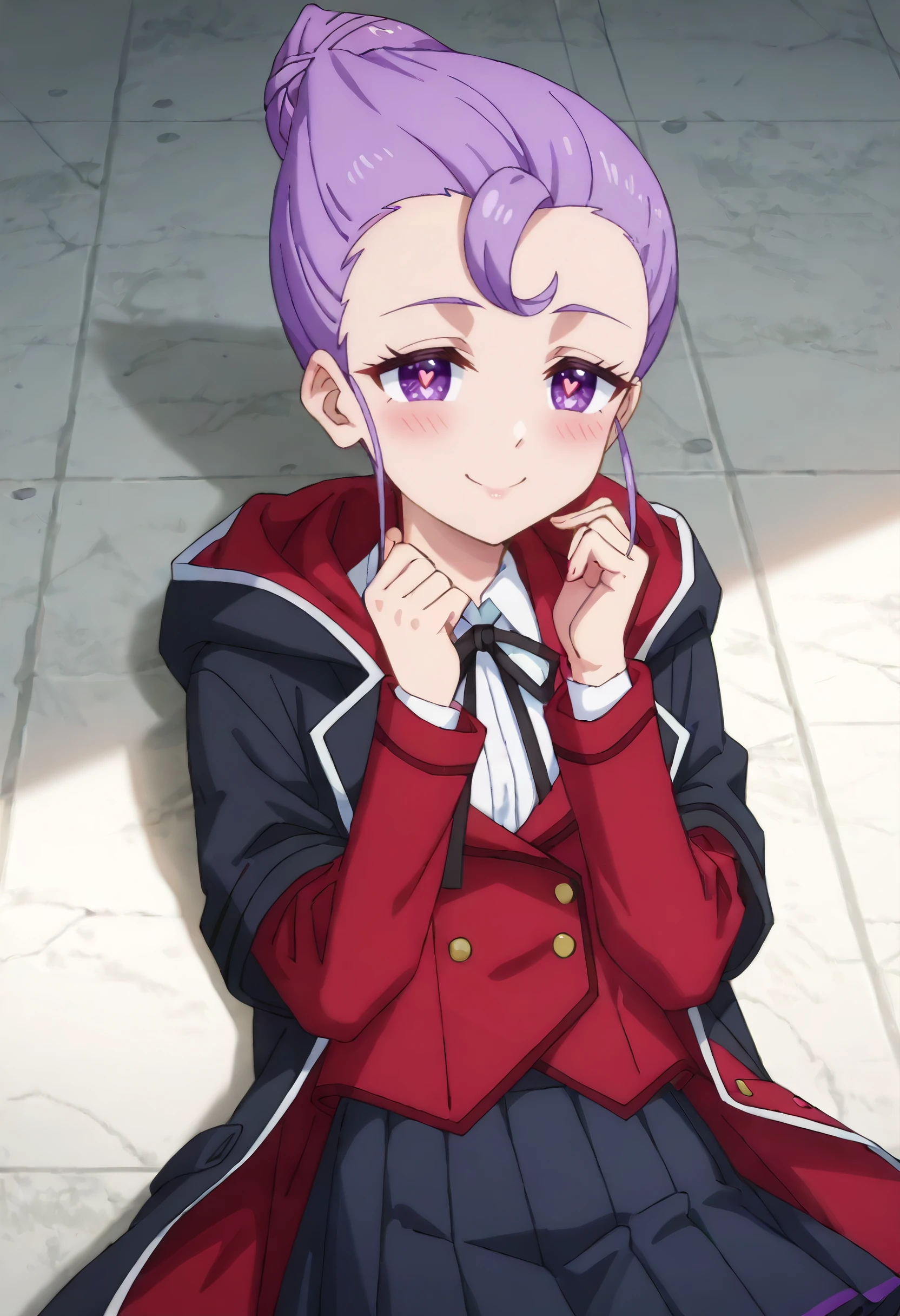 HNMJeryl, purple hair, short hair, purple eyes, hair bun, cone hair bun,