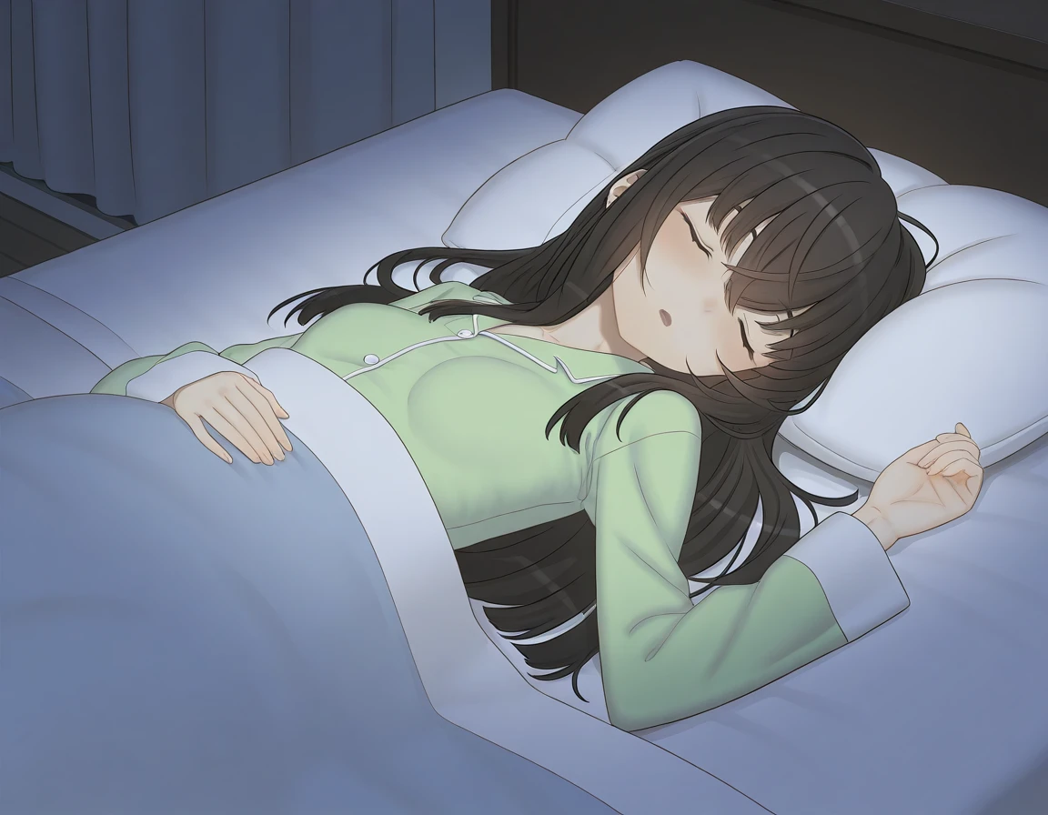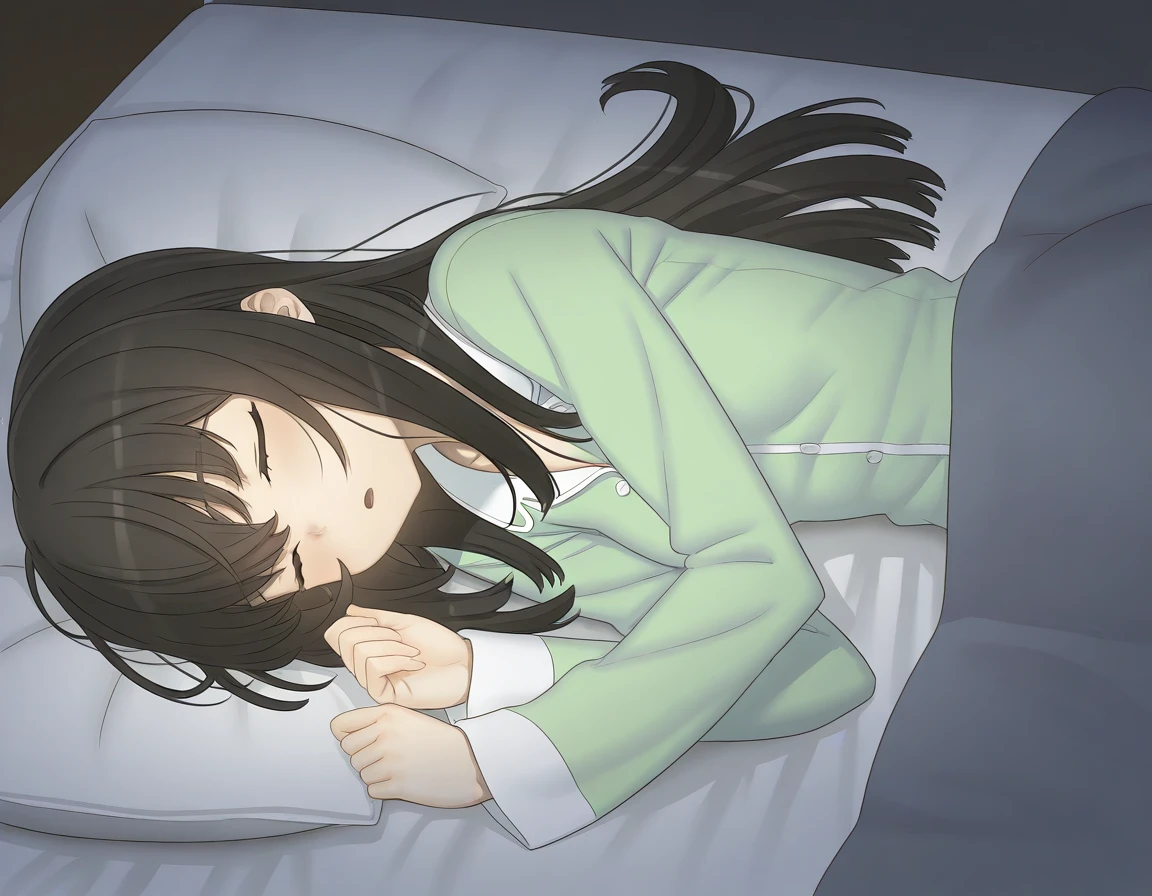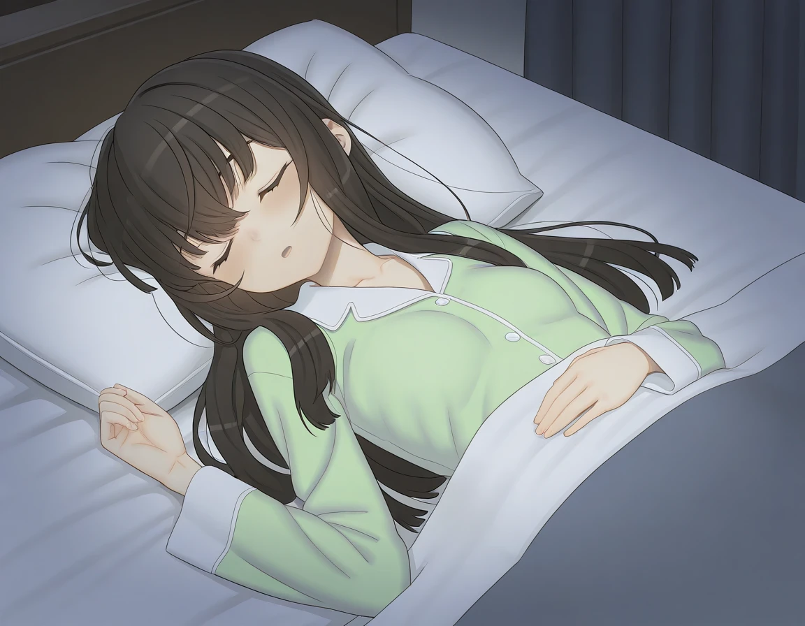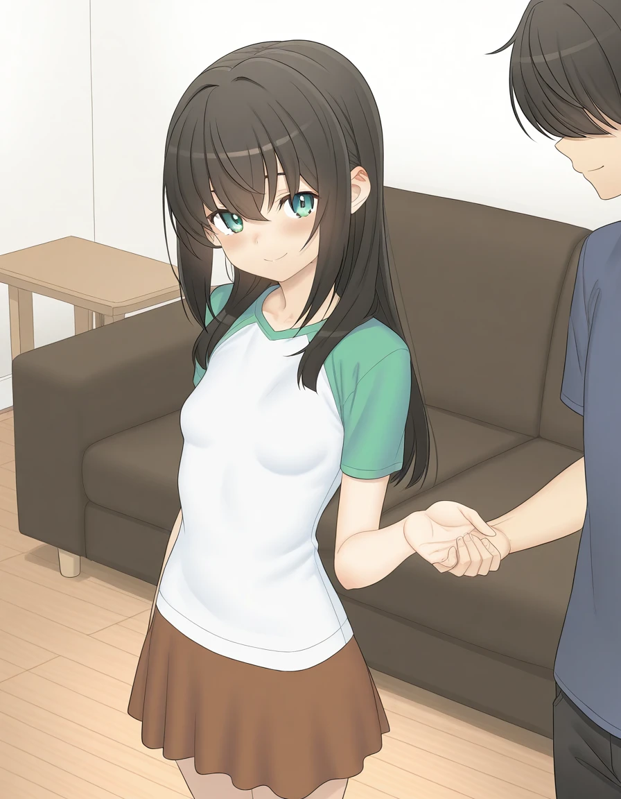 shino(Kyoudai_no_Jouji_Jijou), 1girl,solo, black hair,long hair, green eyes, small breasts, bangs, hair down,
