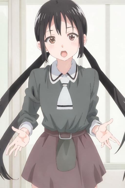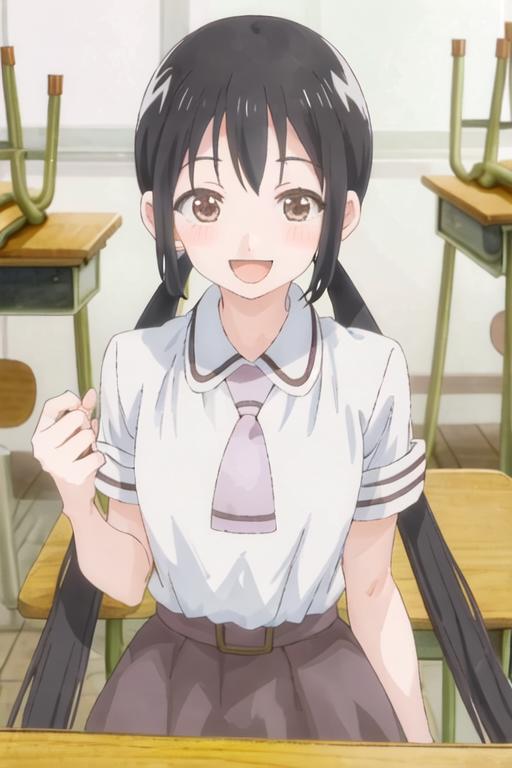 black_hair, long_hair, twintails, brown_eyes, necktie
