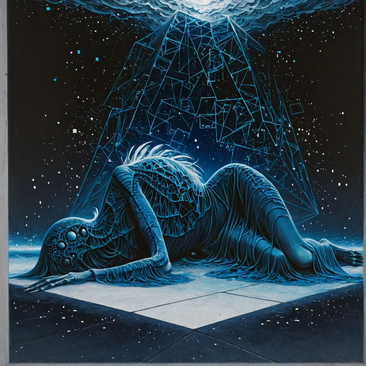 the following should enhance the effect ( zdzislaw beksinski, traditional media, painting (medium), acrylic paint (medium), surreal, horror \(theme\),)