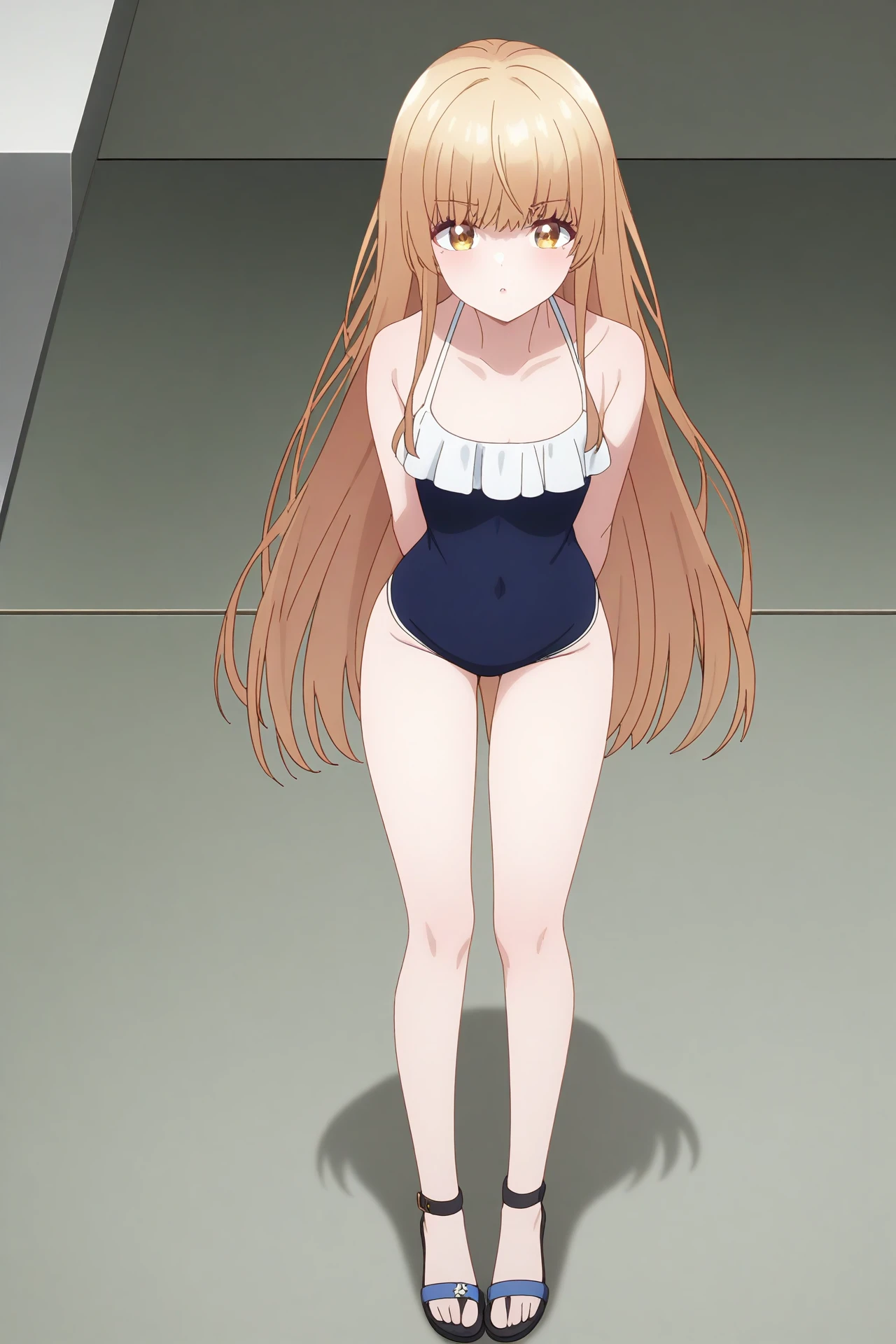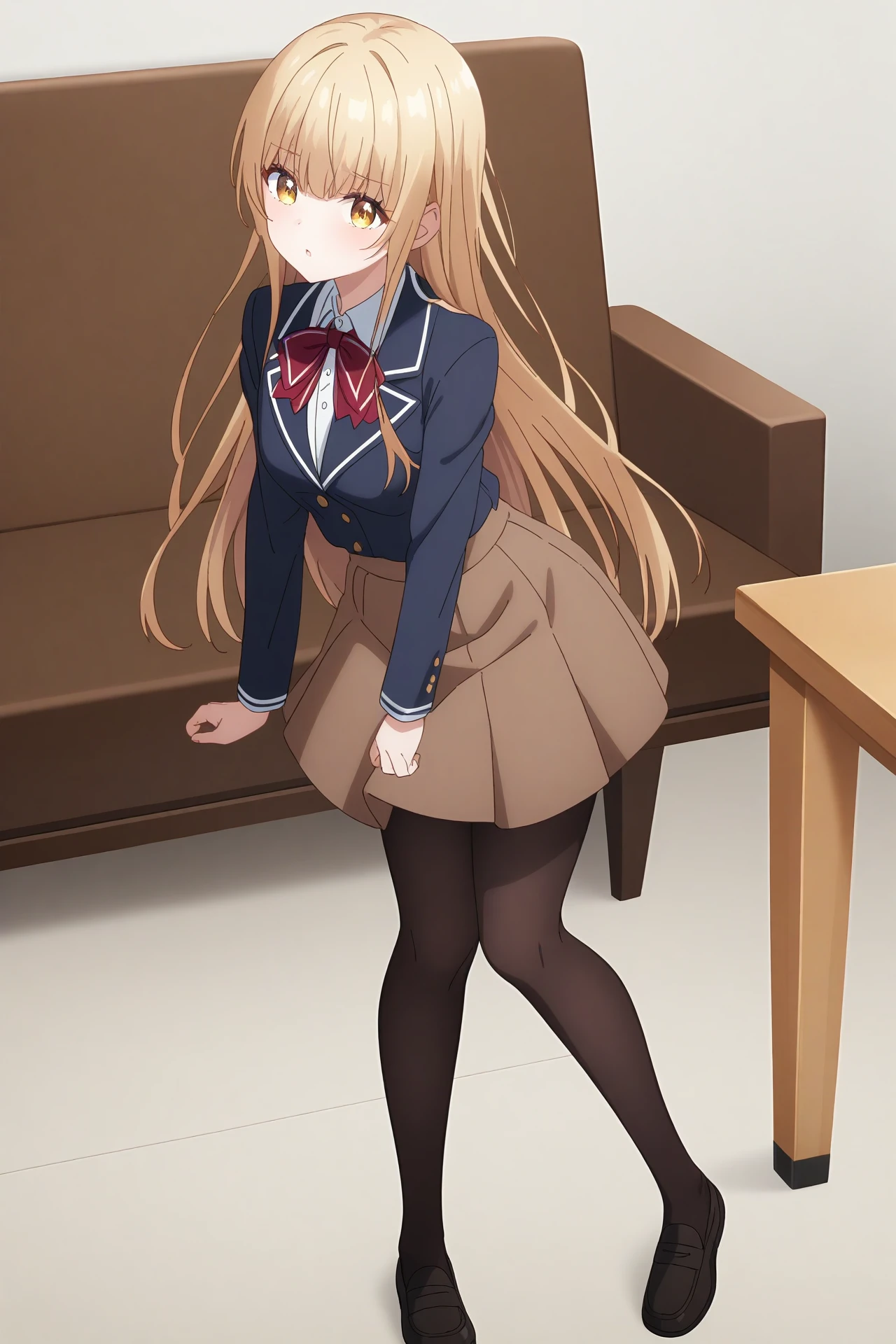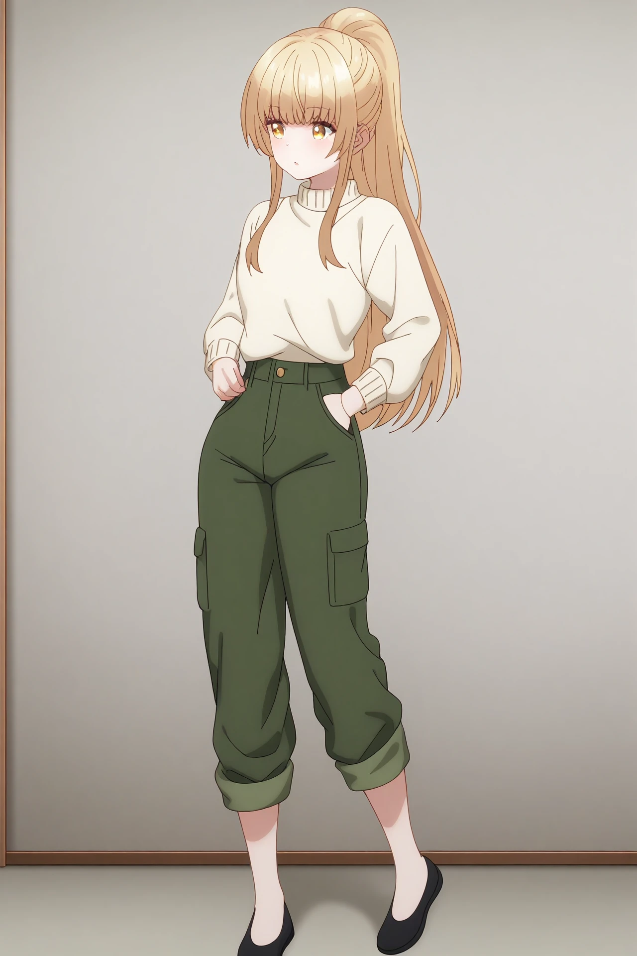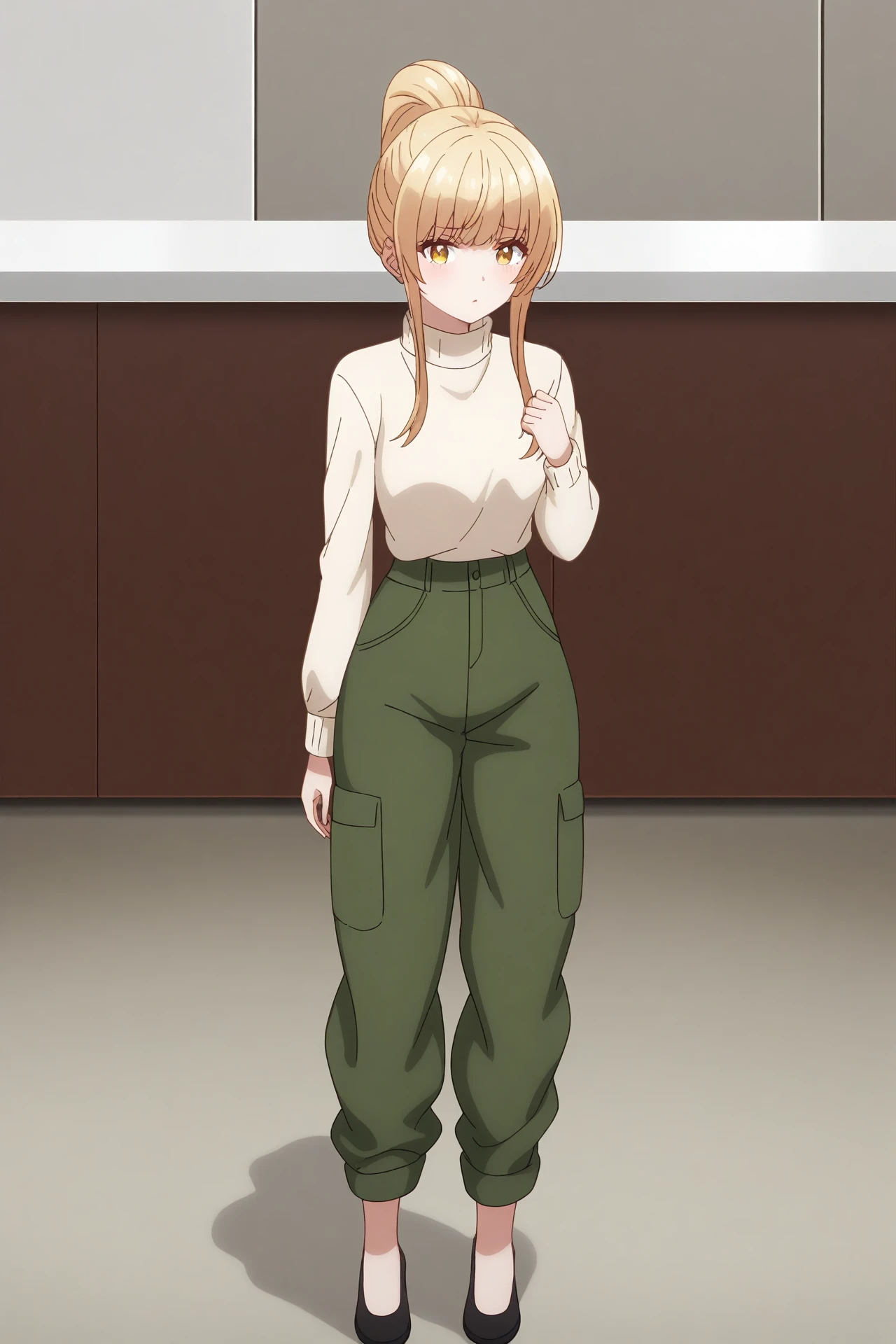an-mahiru, school uniform, green pants, sweater, ponytail