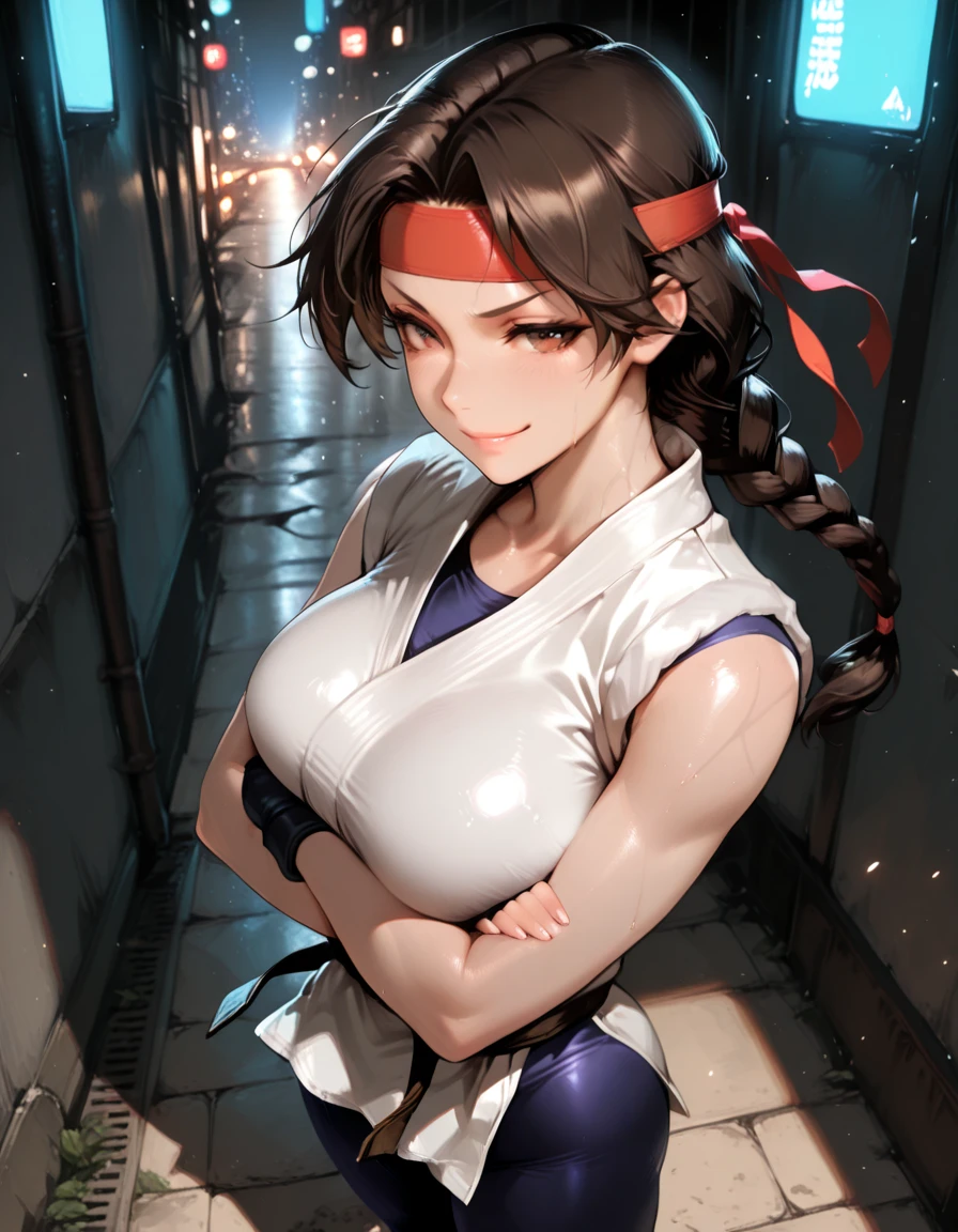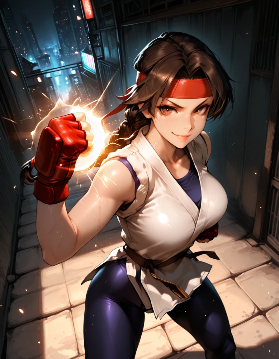 dougi, sneakers, spandex, headband, fingerless gloves,