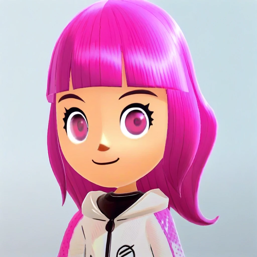 Haru, black sneakers, black waist tie, 1girl, pink eyes, multi colored skirt, black undershirt, pink and white skirt, pink and white jacket, bangs, black leggings, multi color jacket, pink hair, long sleeve