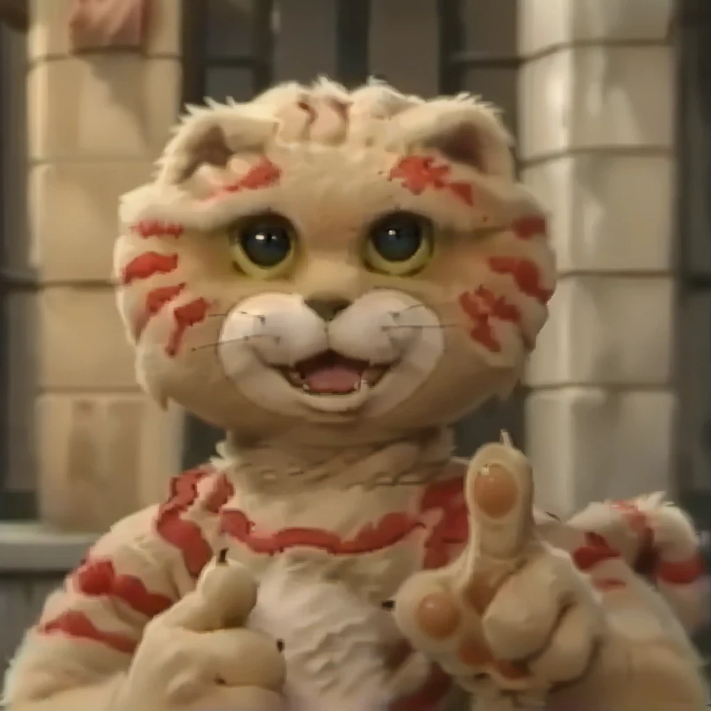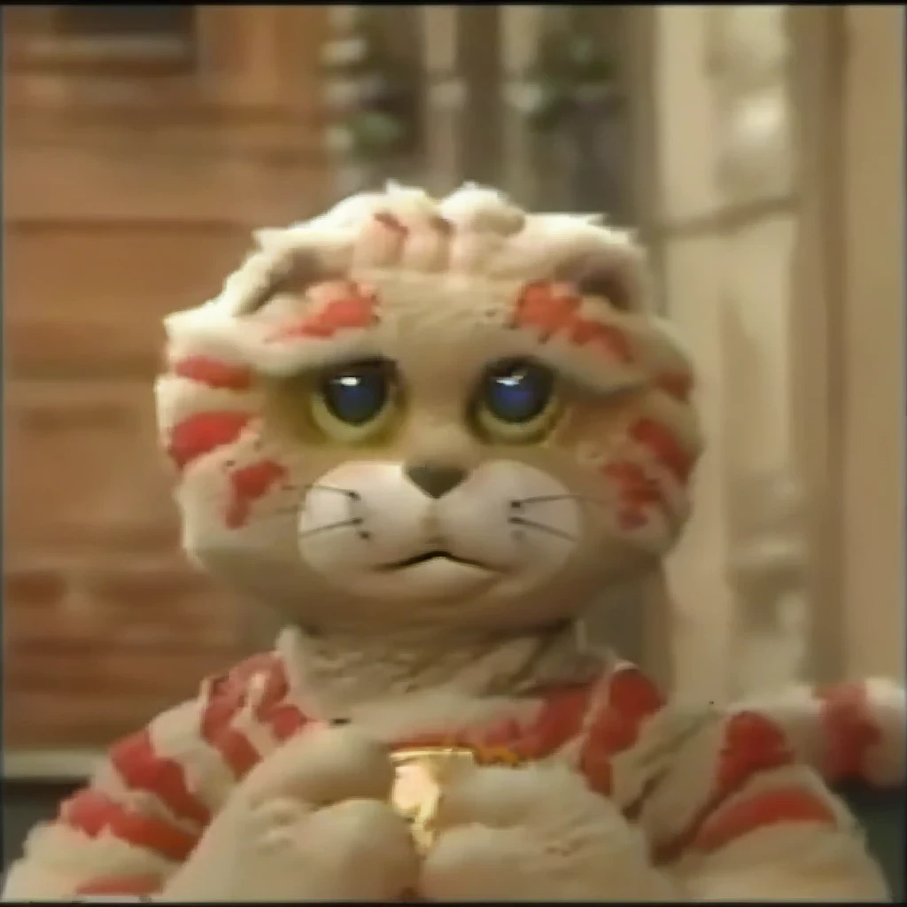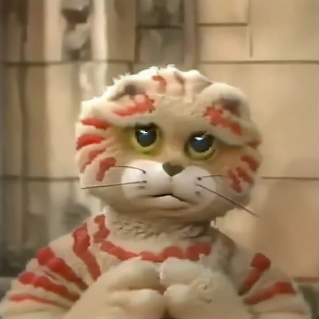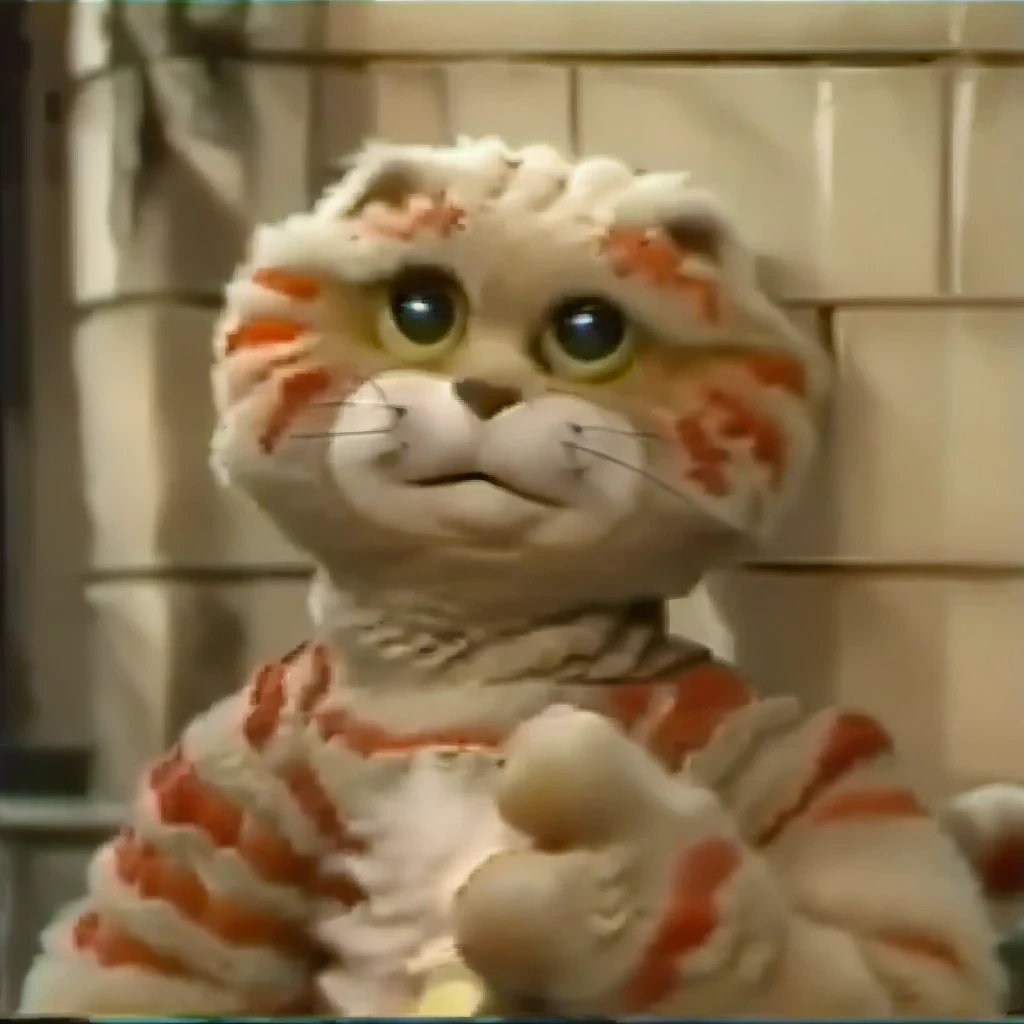Helpful tags: cat, puppet, orange fur, yellow sclera, black eyes, upper body, whiskers