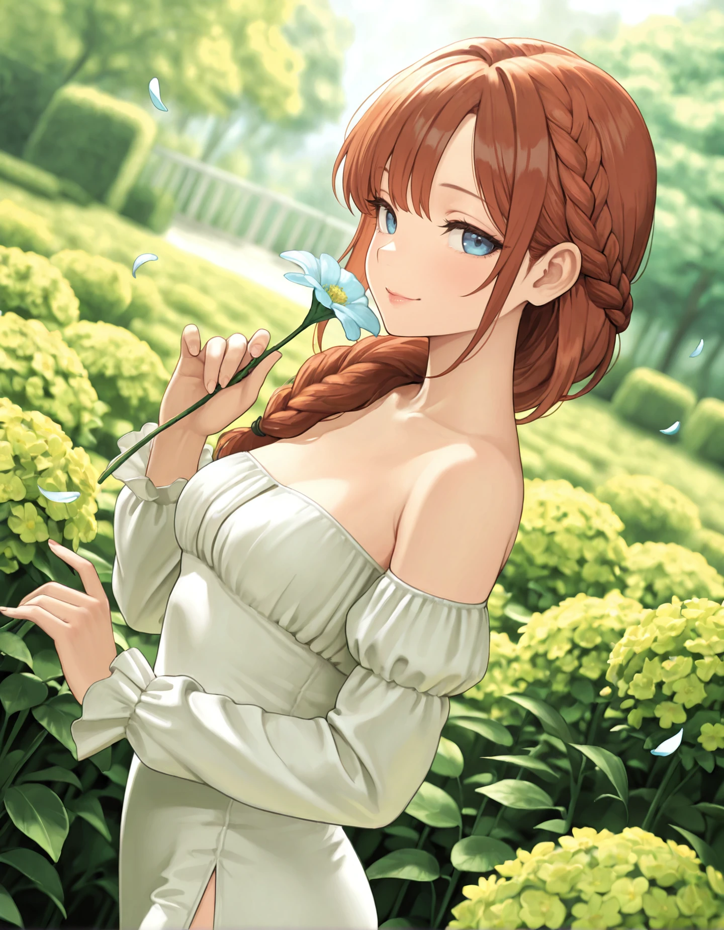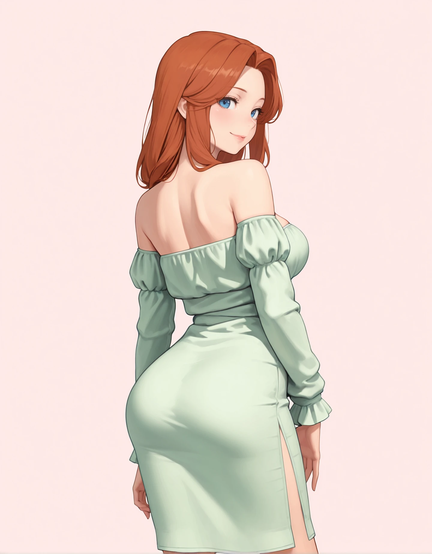 off-shoulder dress, long sleeves, side slit, (color) dress