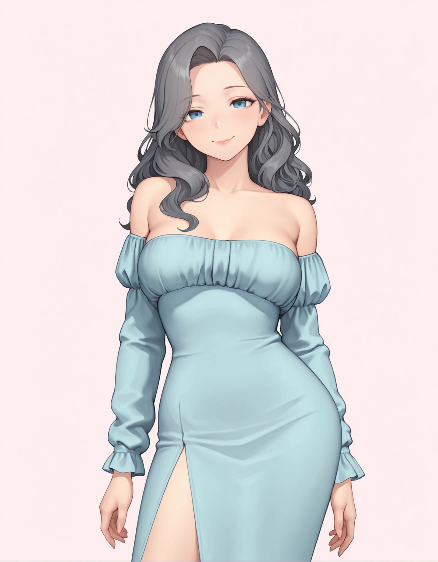 TAGS: off-shoulder dress, long sleeves, side slit, (color) dress