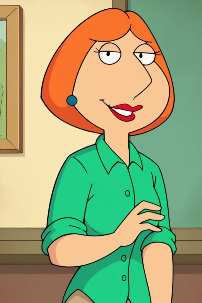 lo_is, orange hair, short hair, lipstick, green shirt, sleeves rolled up, pants, purple footwear