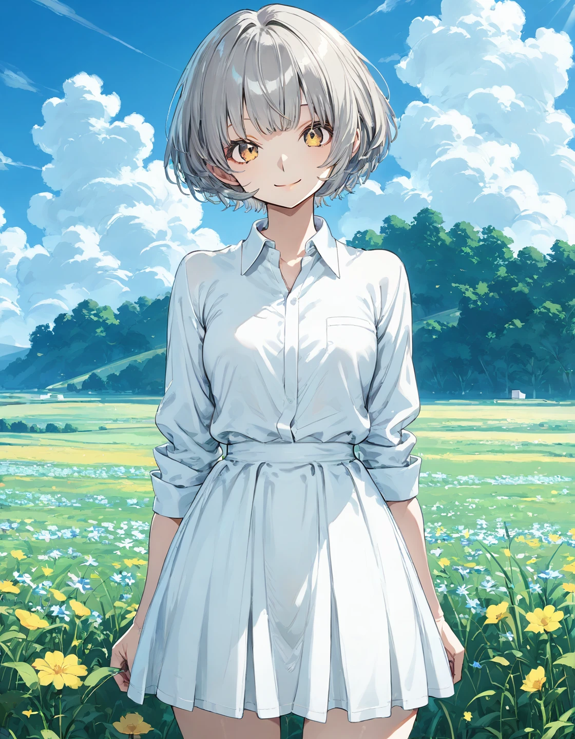 Trigger word: momoshiro_chiyoko, yellow eyes, grey hair, short hair