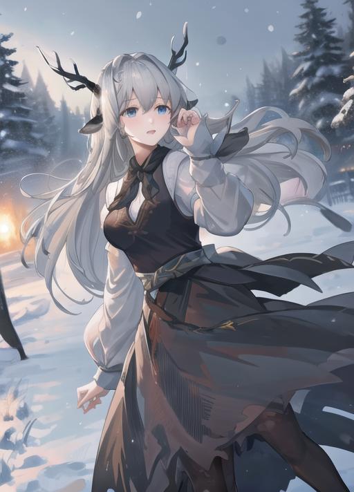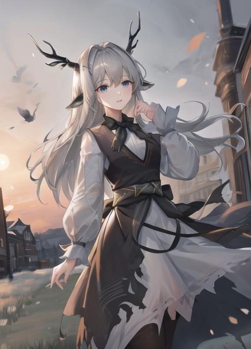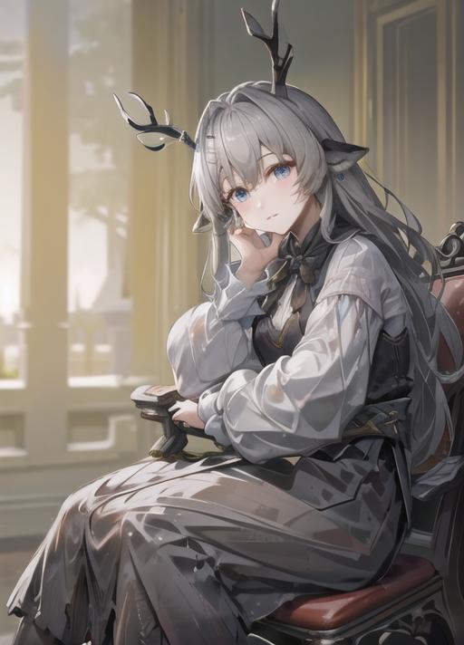 Model of Arknights Alina. Later I will adjust and show more example on this. Recommend 0.88 to 0.65 depends on your usage. There are still a two problems about this LORA such as the braid and hairclips doesn't work stable on this LORA. I would try to solve the problems. This character are better than the past characters I train as her material can be consider as many.