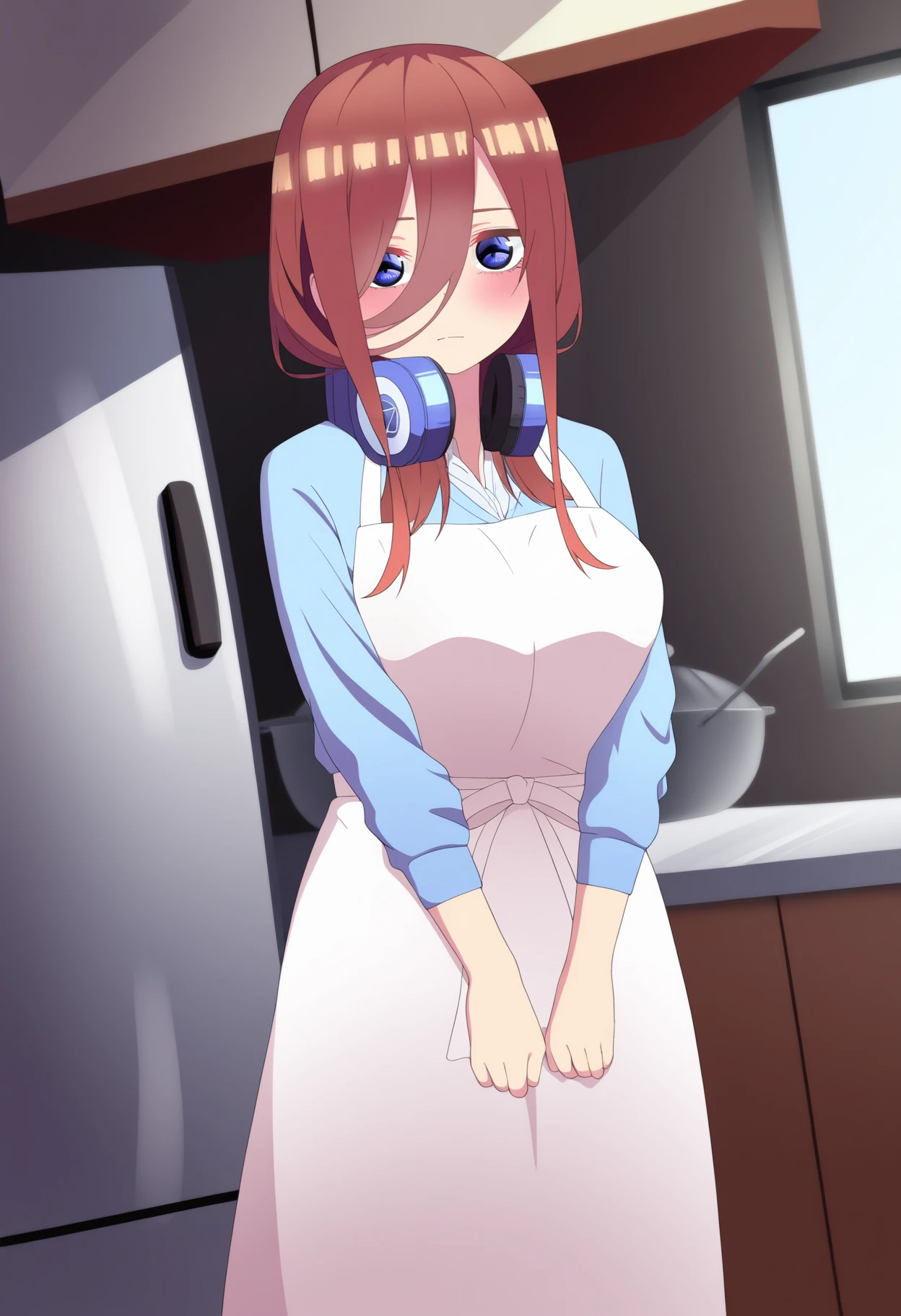 1girl, nakano miku, brown hair, long hair, hair between eyes, blow eyes, bangs