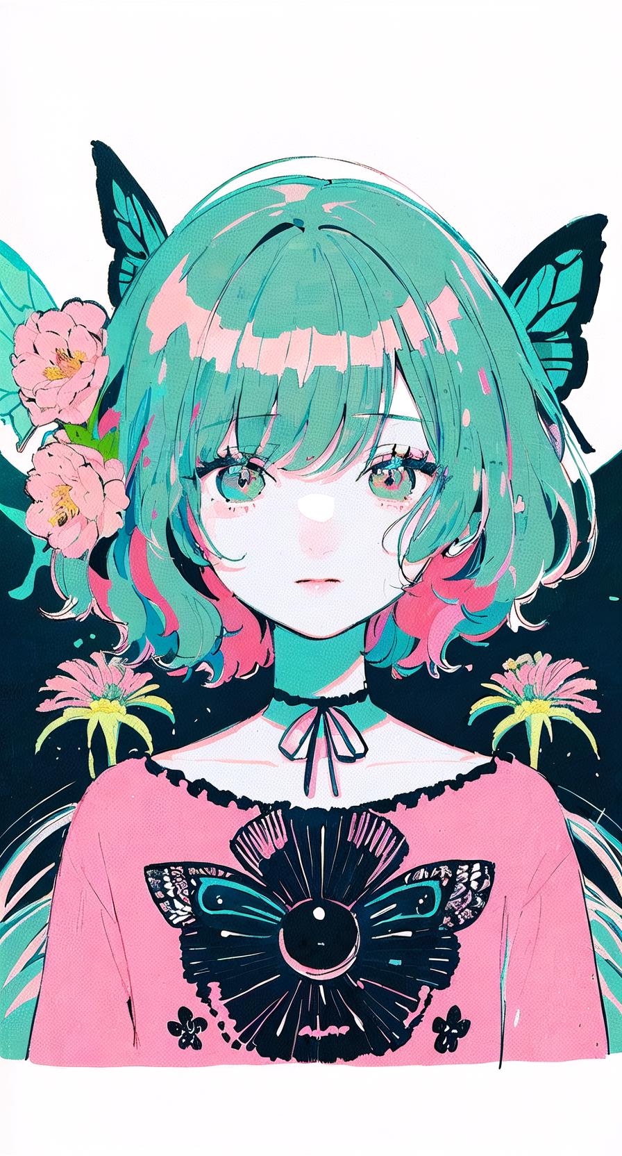 This model can achieve more detailed cool tone accents and background & add color stylization such as halftone dot .