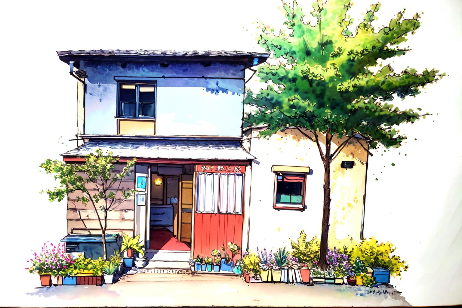 一隅/马克笔一户建/Architectural marker painting LORA - v1.0