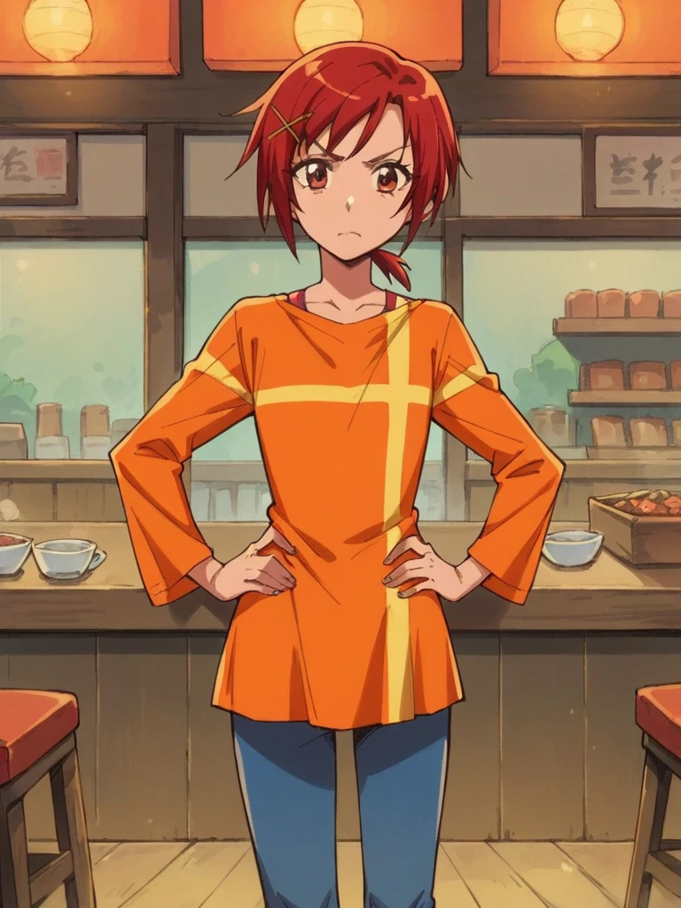 Hino Akane SM, red hair, red eyes, short hair, short ponytail