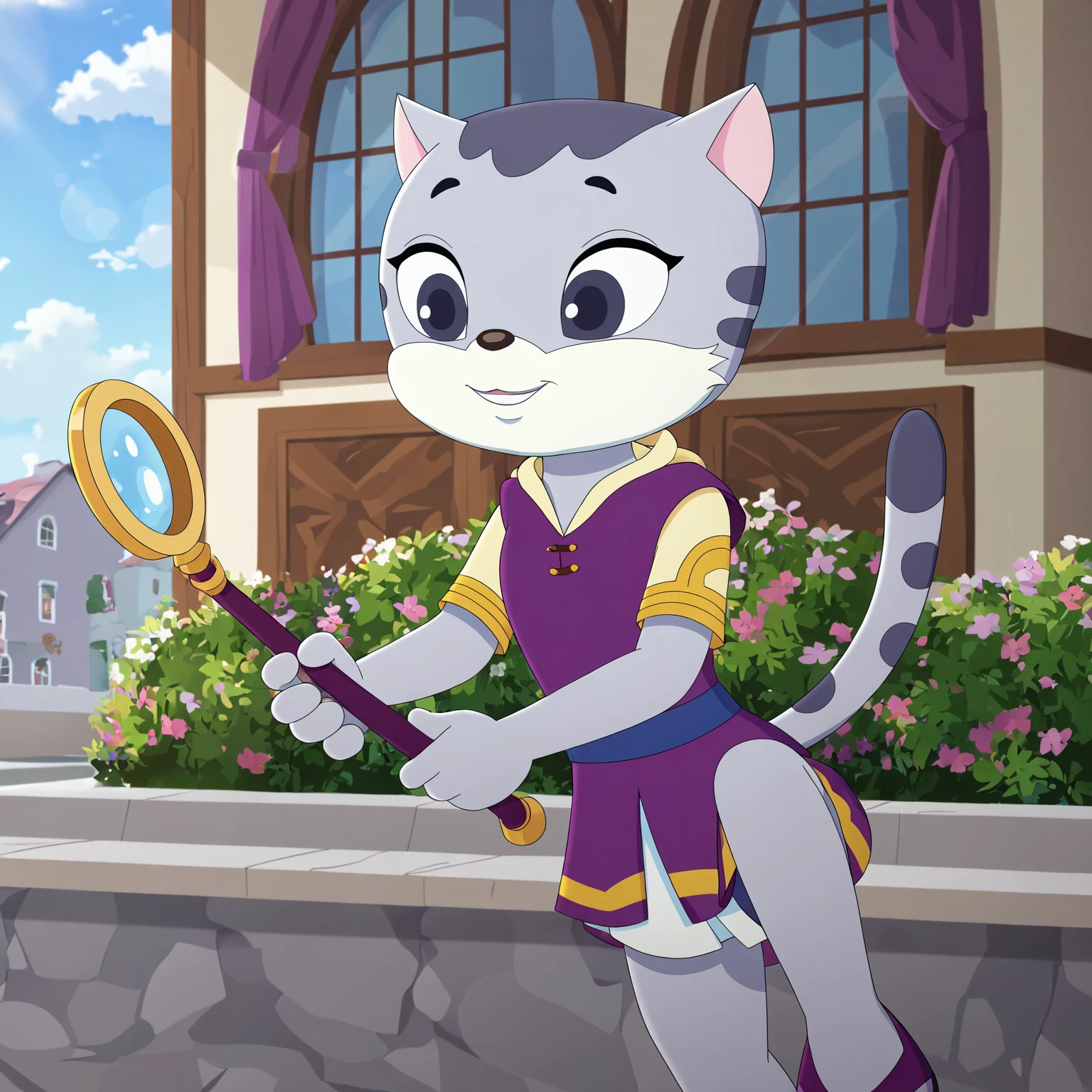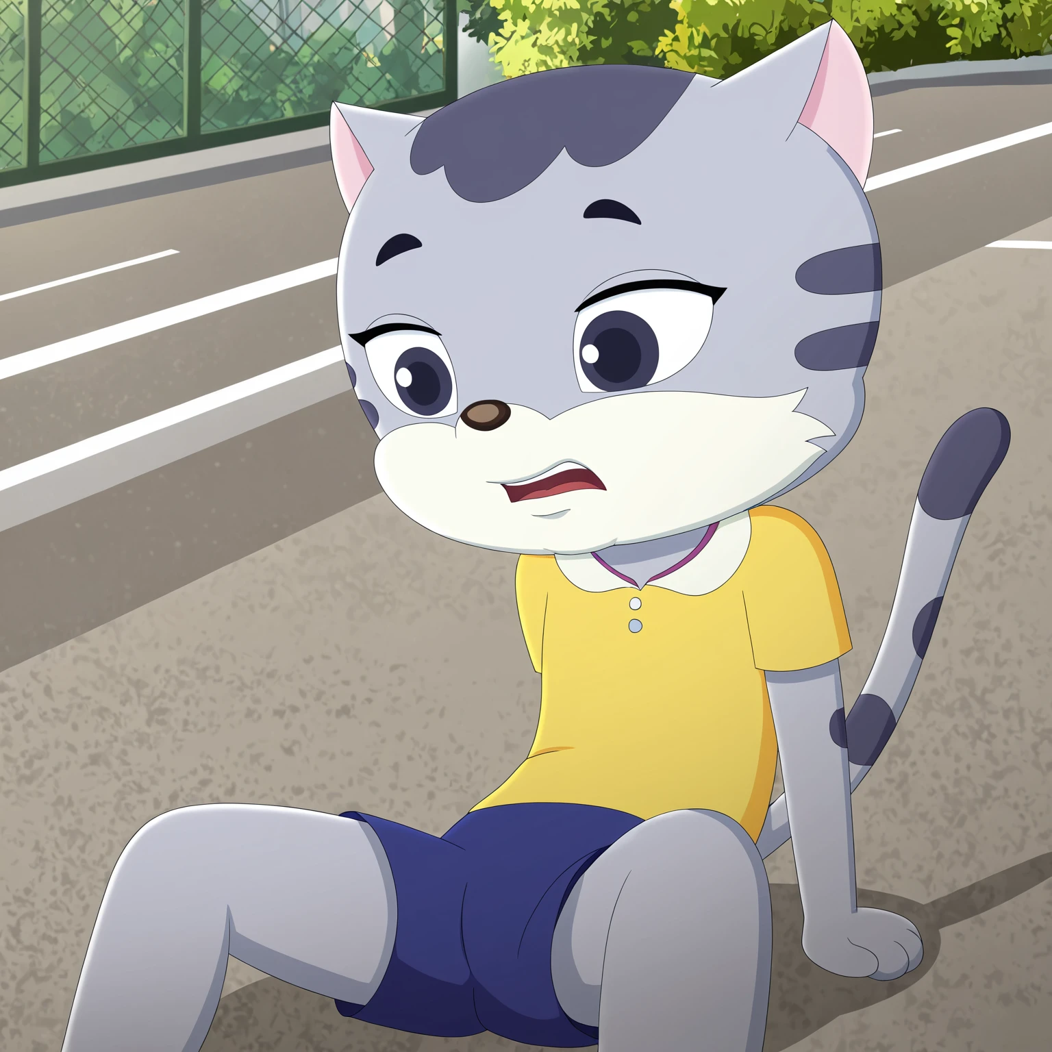 tags: "yaungi, 1girl, female, cat, cat_tail, furry, gray_fur, gray chest, gray body, gray legs"