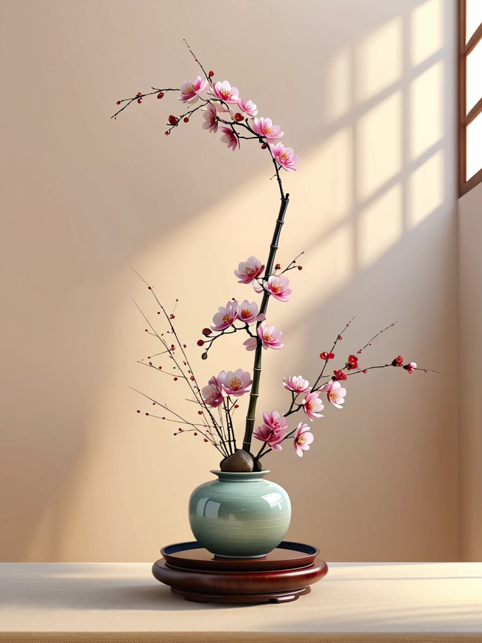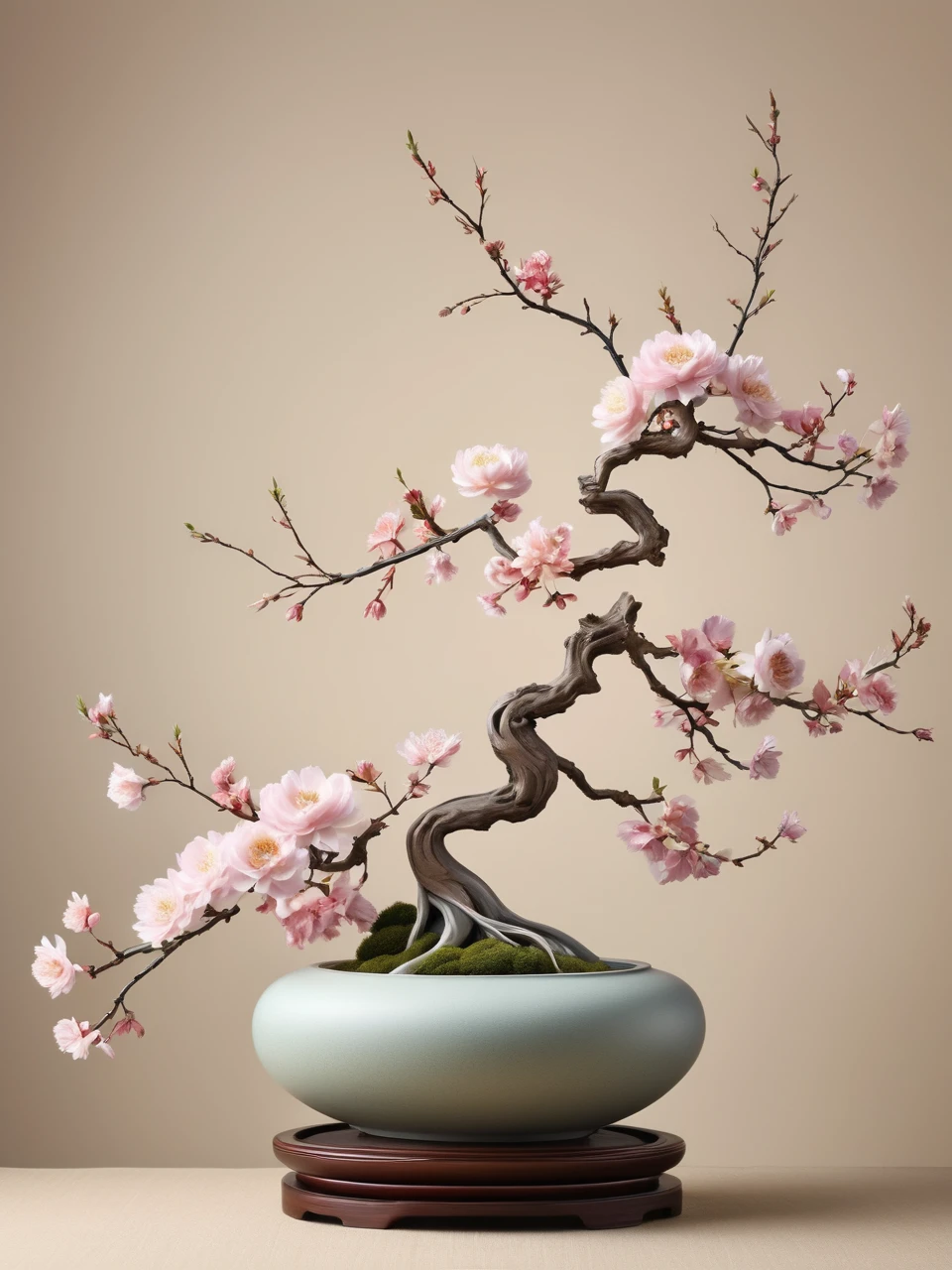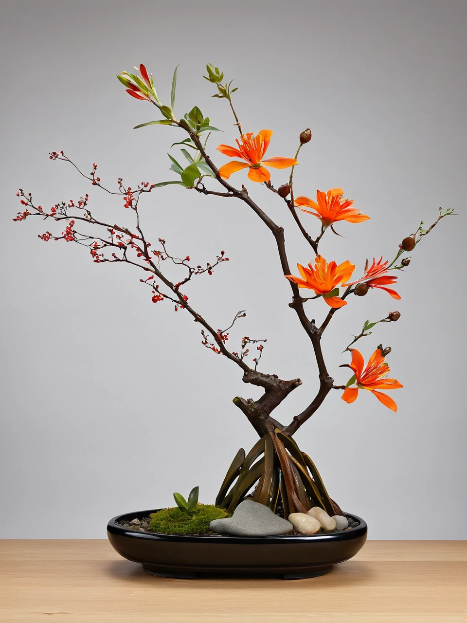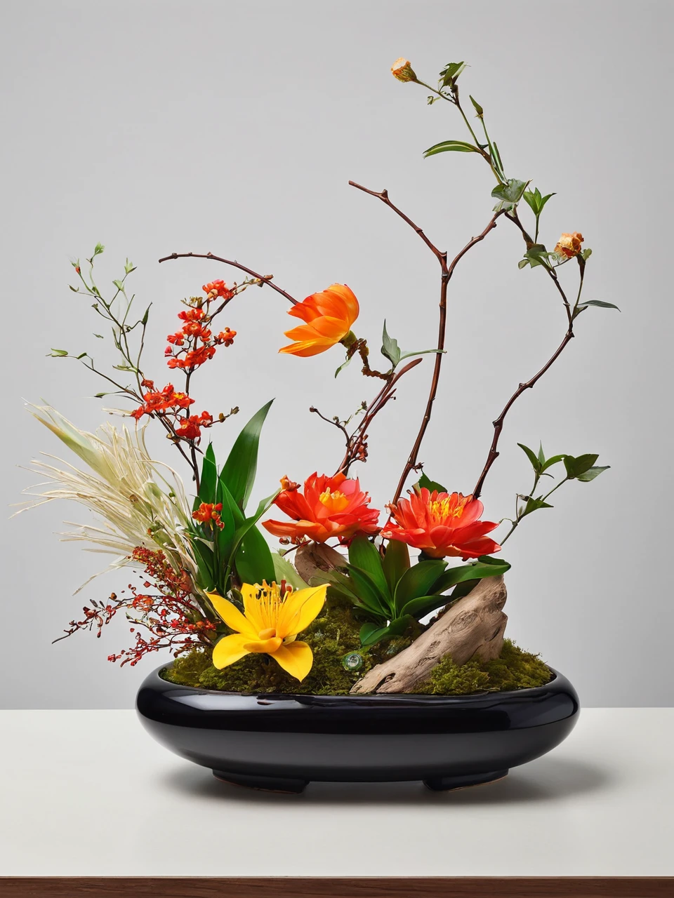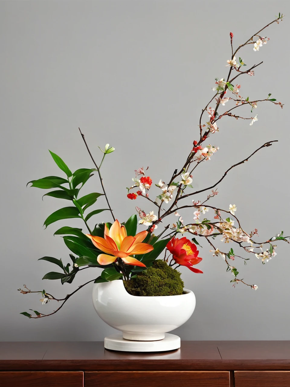 Chinese ikebana pays attention to the beauty of lines, emphasizes the natural posture and overall layout of flowers, and pursues asymmetrical and irregular natural beauty. At the same time, Chinese ikebana also pays attention to the proportionality of flowers and materials, as well as the harmony and unity of the work and the environment. Each ikebana piece is a unique work of art, and it needs to be appreciated in conjunction with the natural posture and state of the plant, as well as the overall temperament and environment of the piece.