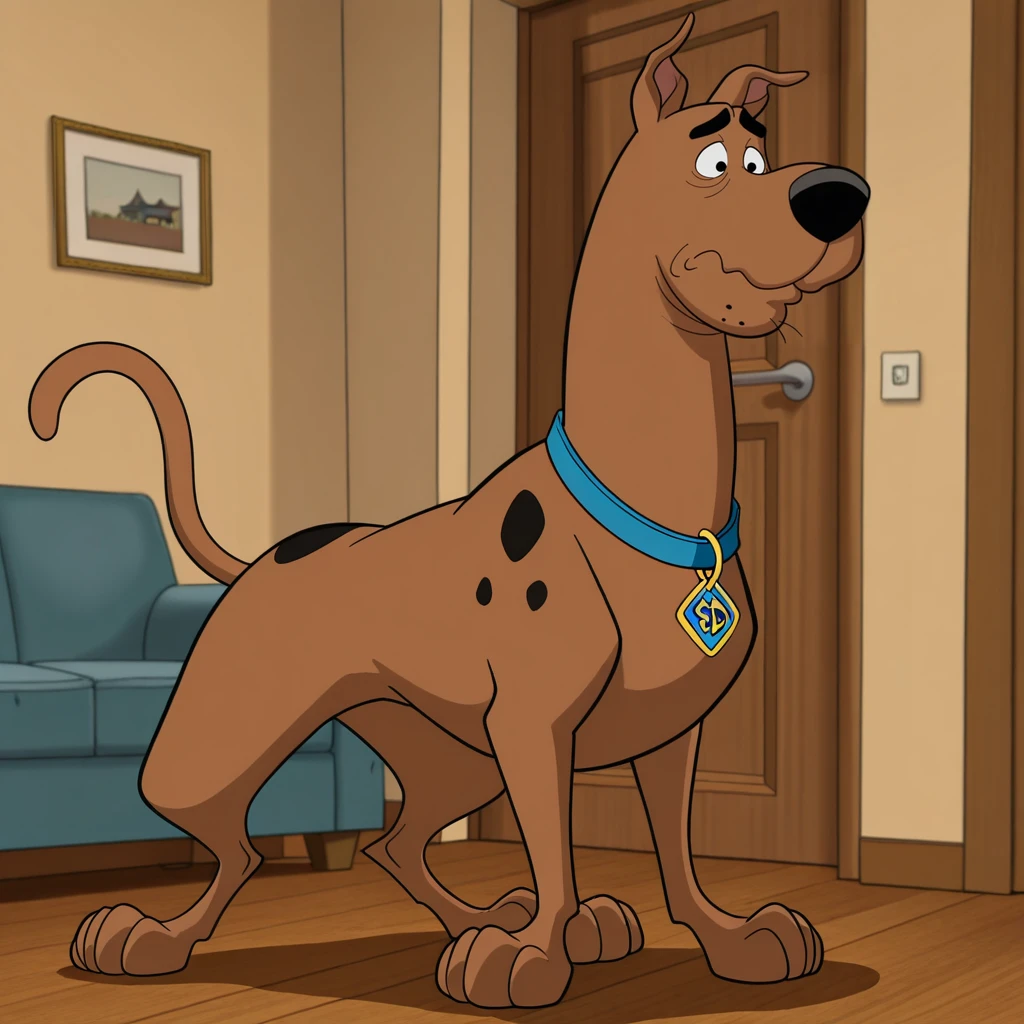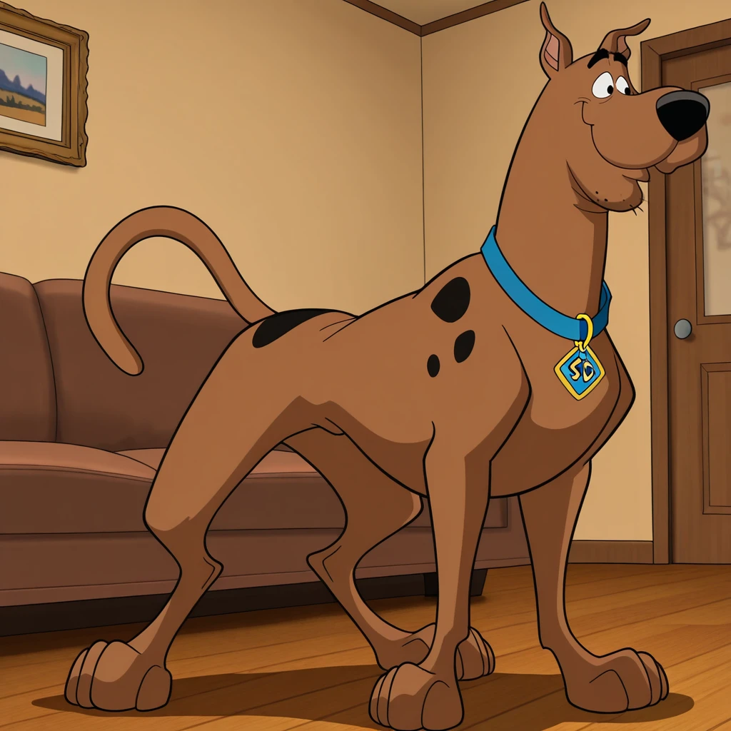 male, furry male, feral, quadruped, solo, dog, brown fur, black eyes, black nose, shorts ears, pawpads, tail, black spots on body