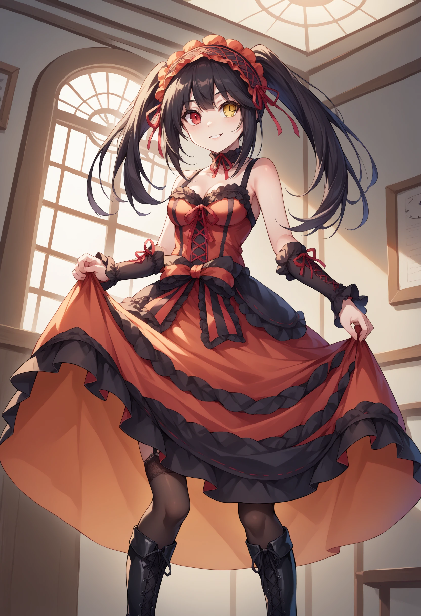 TokisakiKurumi, black hair, twintails, heterochromia, red eye, yellow eye, clock eyesBase appearance 2 (for custom outfits):