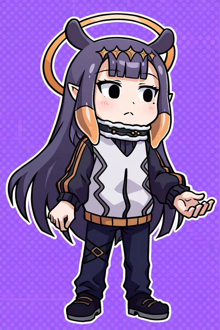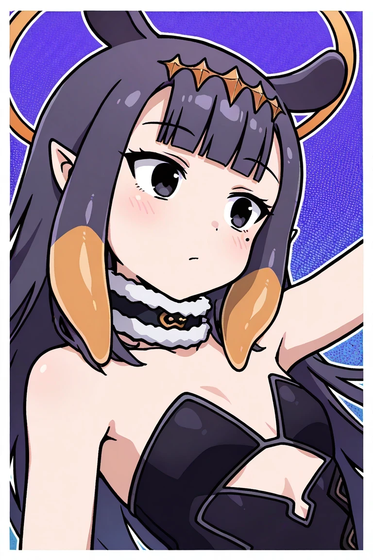 NinomaeInanisFNFHR, 1girl, black eyes, ninomae ina'nis, blunt bangs, mole under eye, sidelocks, halo, multicolored hair, pointy ears,