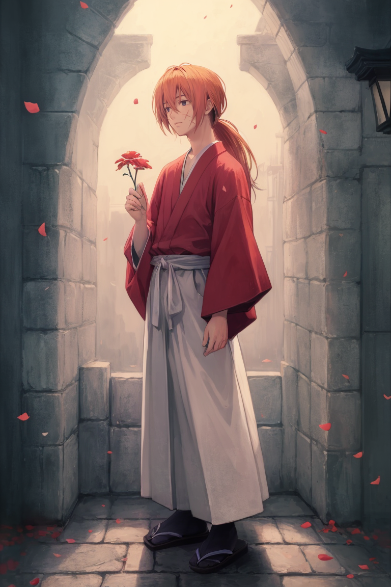 Lora works nicely at 1 weight, trigger word is kenshin rk.