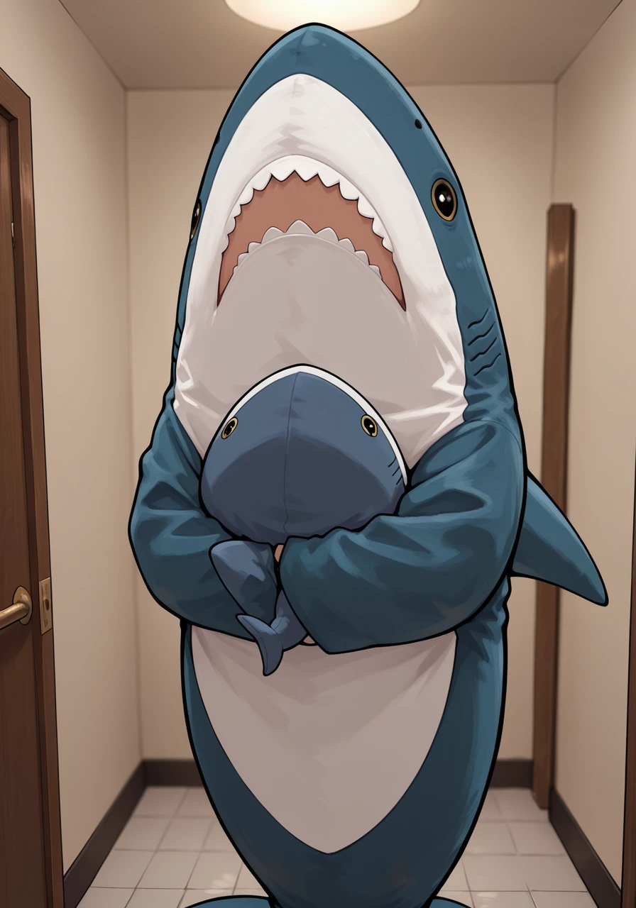 BLÅHAJ (pronounced "blaw-high") is a plush toy shark produced by the Swedish furniture retailer IKEA. The name "BLÅHAJ" translates to "blue shark" in Swedish. Measuring approximately 39¼ inches (100 cm) in length, this cuddly companion is designed to resemble a blue shark and is made from 100% polyester materials.