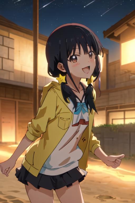 The trigger word is akutsu_ruri_ahogirl, and the recommended tags are best quality, masterpiece, highres, solo, {akutsu_ruri_ahogirl:1.15}, black_hair, star_\(symbol\), twintails, hair_ornament, brown_eyes, open_mouth, long_hair, star_hair_ornament.