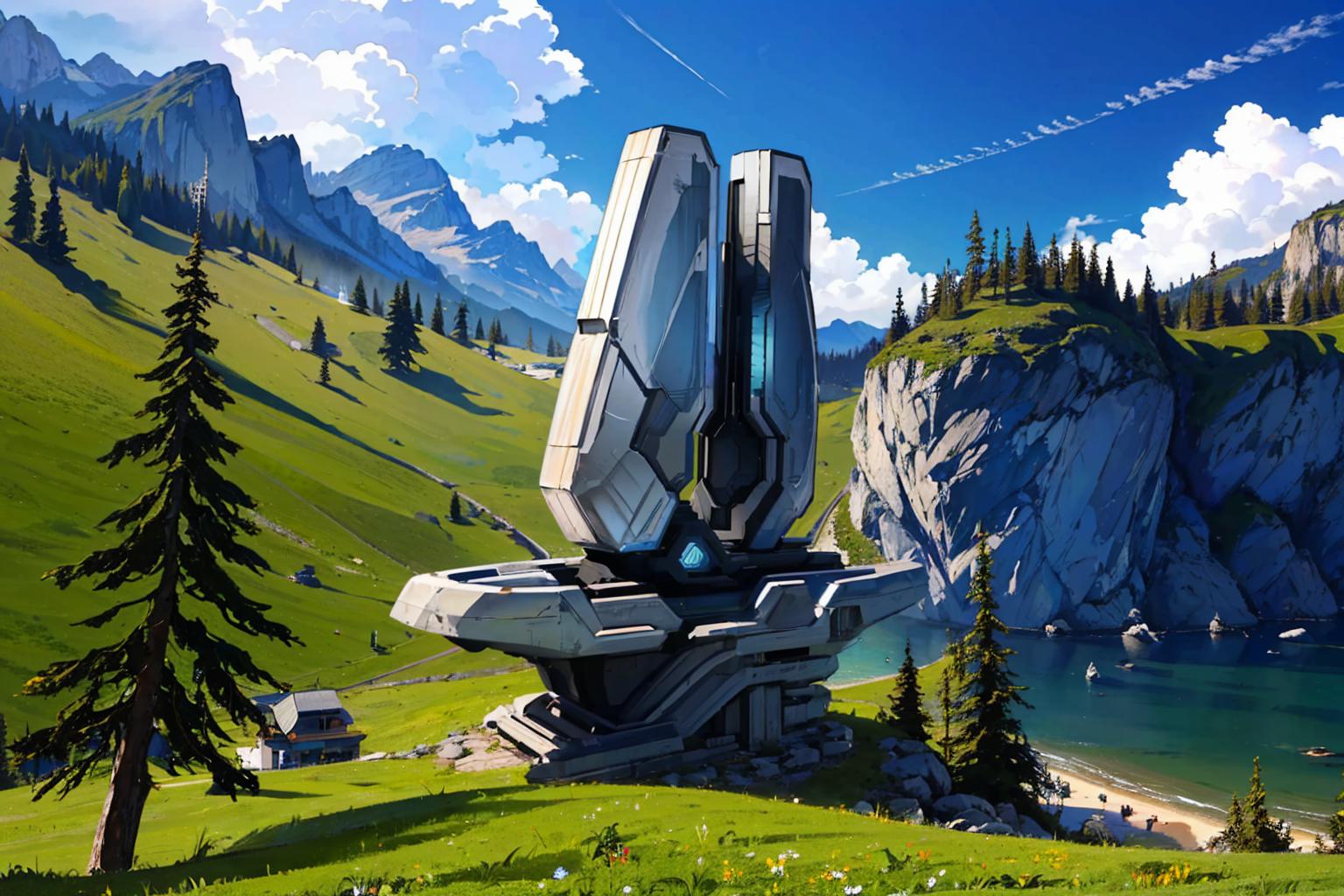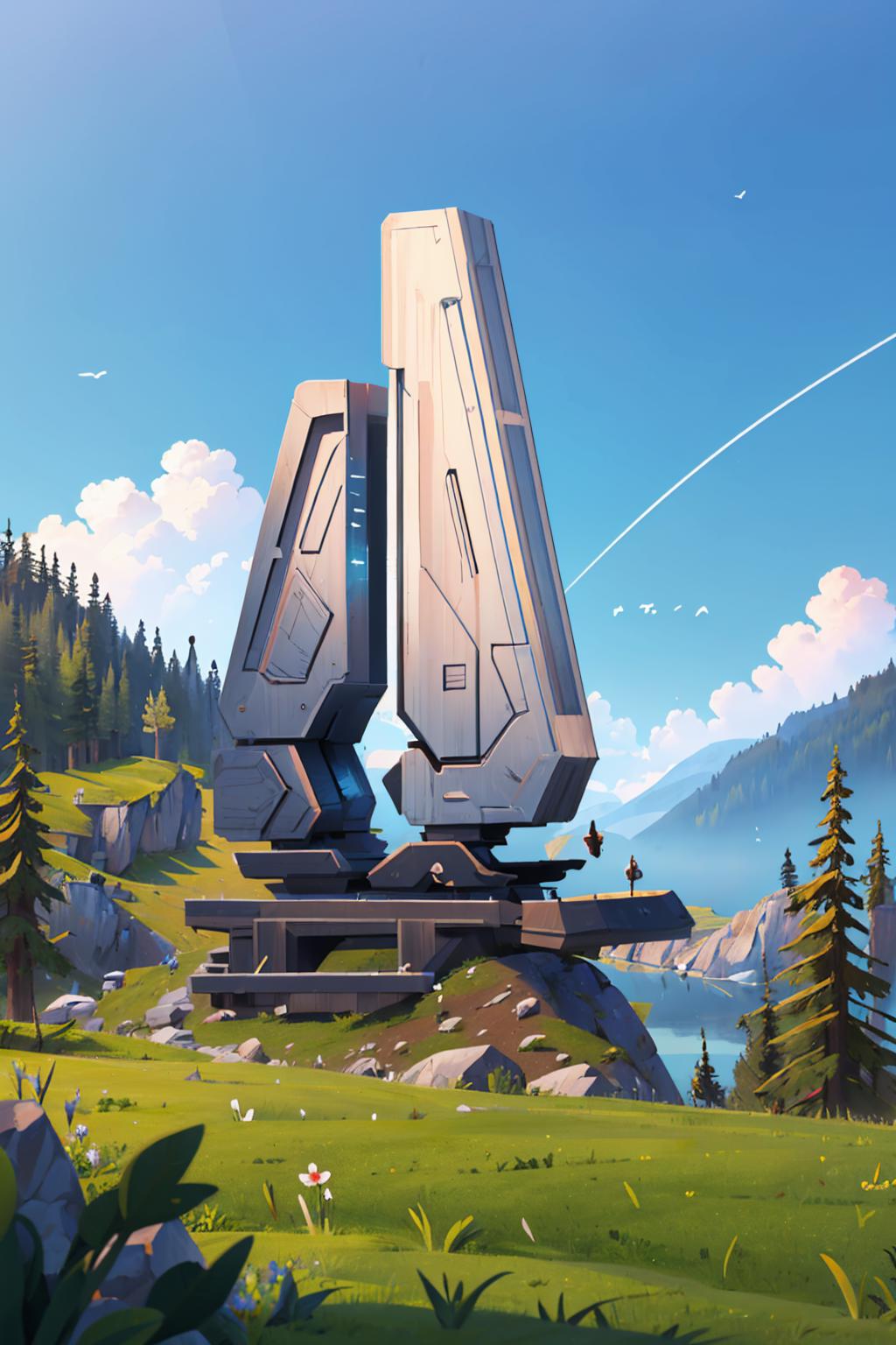 Took screenshots from the 2nd level of Halo CE + concept art from internet searches.