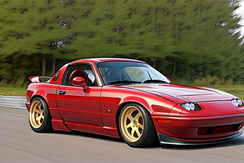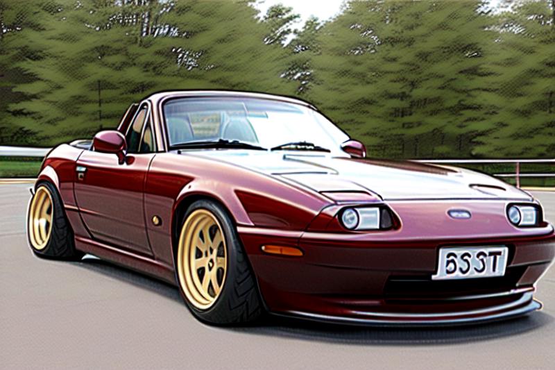I noticed stable diffusion struggles to make specific cars. So I built a small embedding for the lovable NA miata. Since many of the images are from slammed cars quite a few are stanced, it can get confused about pop ups up and down but overall I think it produces some neat art