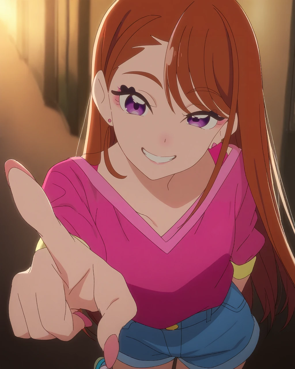 pink shirt, blue shorts, shoes,Cure Butterfly: