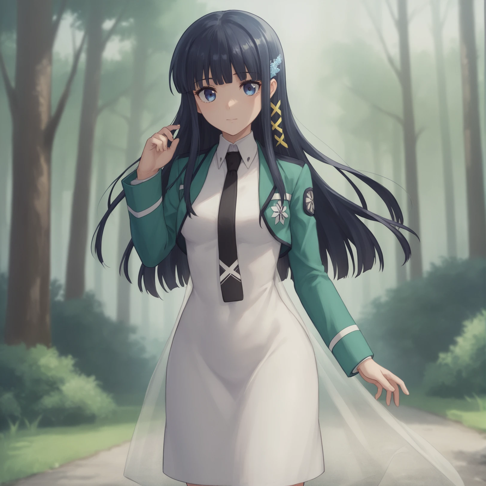 Character: shiba miyuki, black hair, blue eyes, long hair, hair ornament, blunt bangs