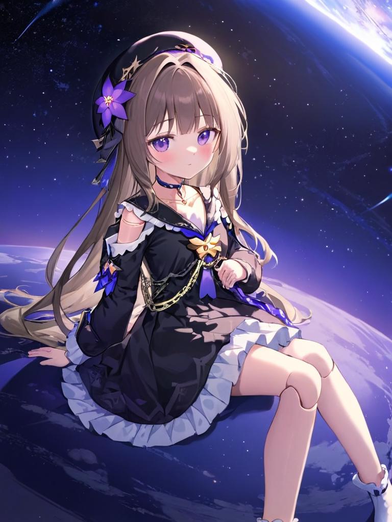 触发词:Herta,dresschoker,chain,long sleeves,frills,shoulder cutout,white dress,frilled dress,clothing cutout,beret,black dress,